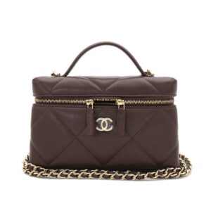 Caviar Quilted Slim Vanity Bag Dark Brown GHW