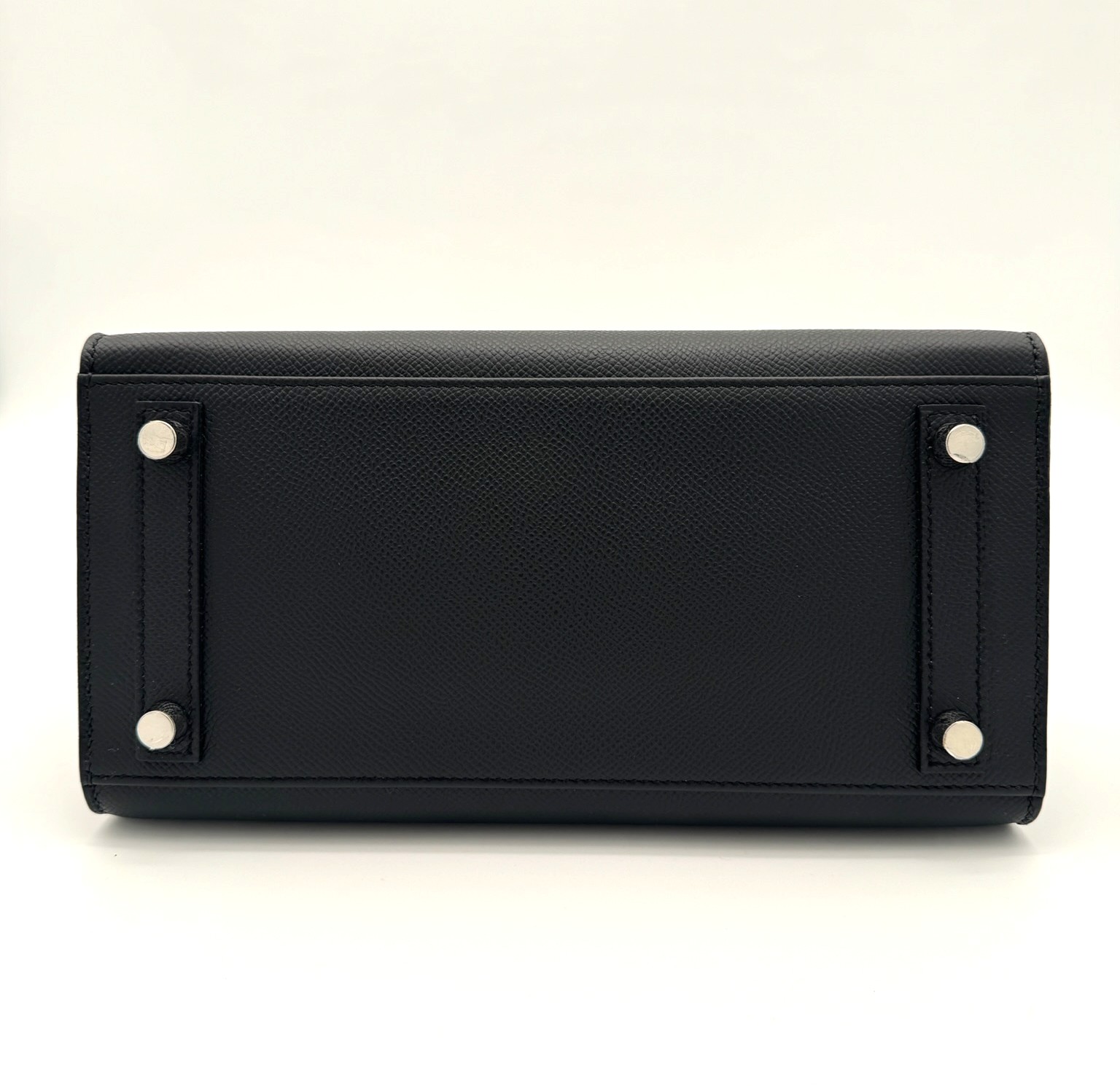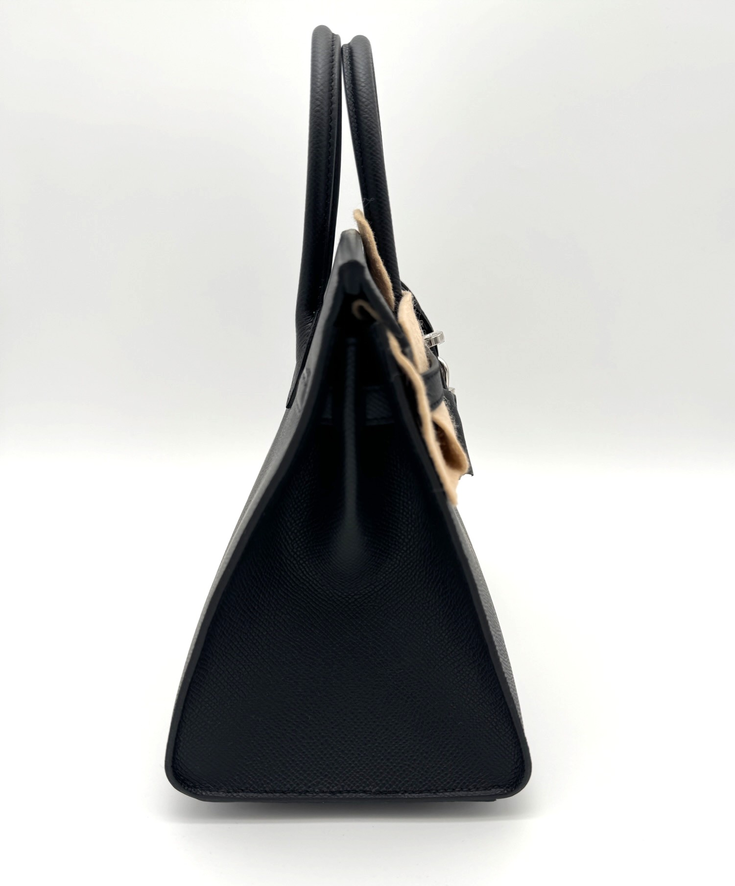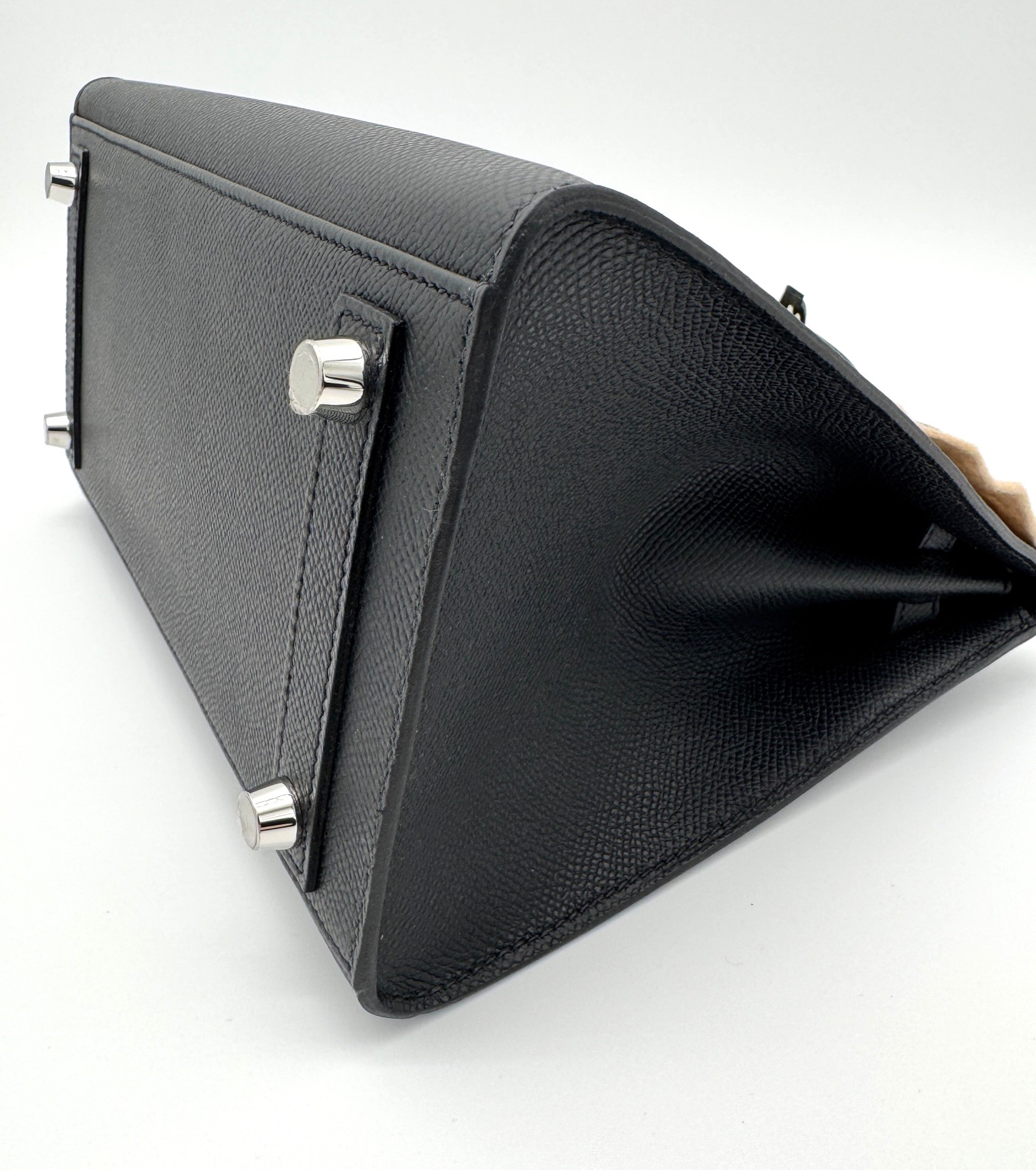 An elegant Hermes bag that is beautifully handcrafted in Epsom calfskin leather and features rolled leather top handles with palladium hardware. The bag opens to a goatskin leather interior with zipper and pockets.