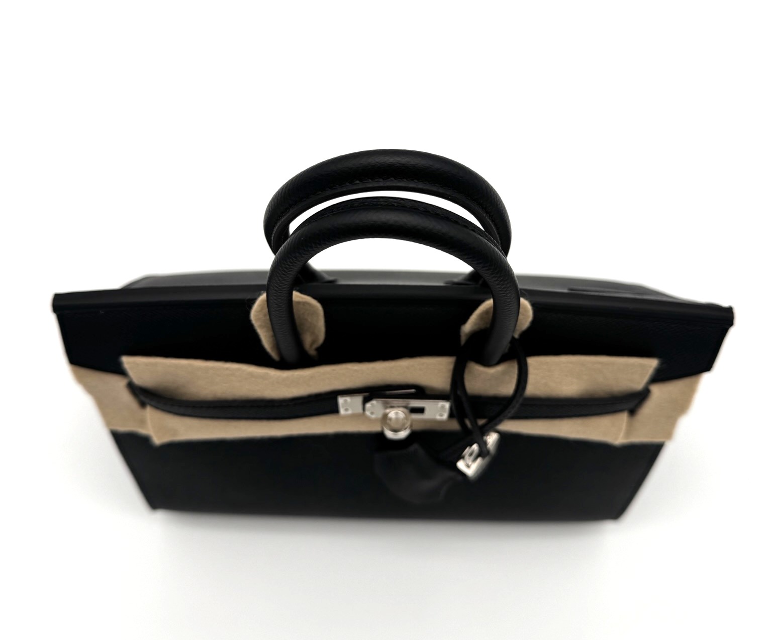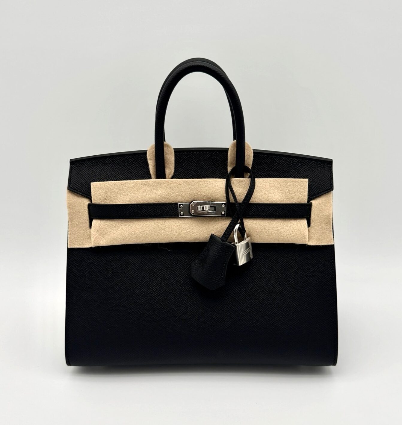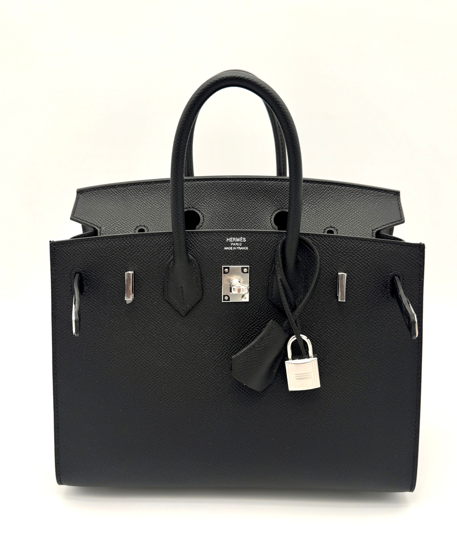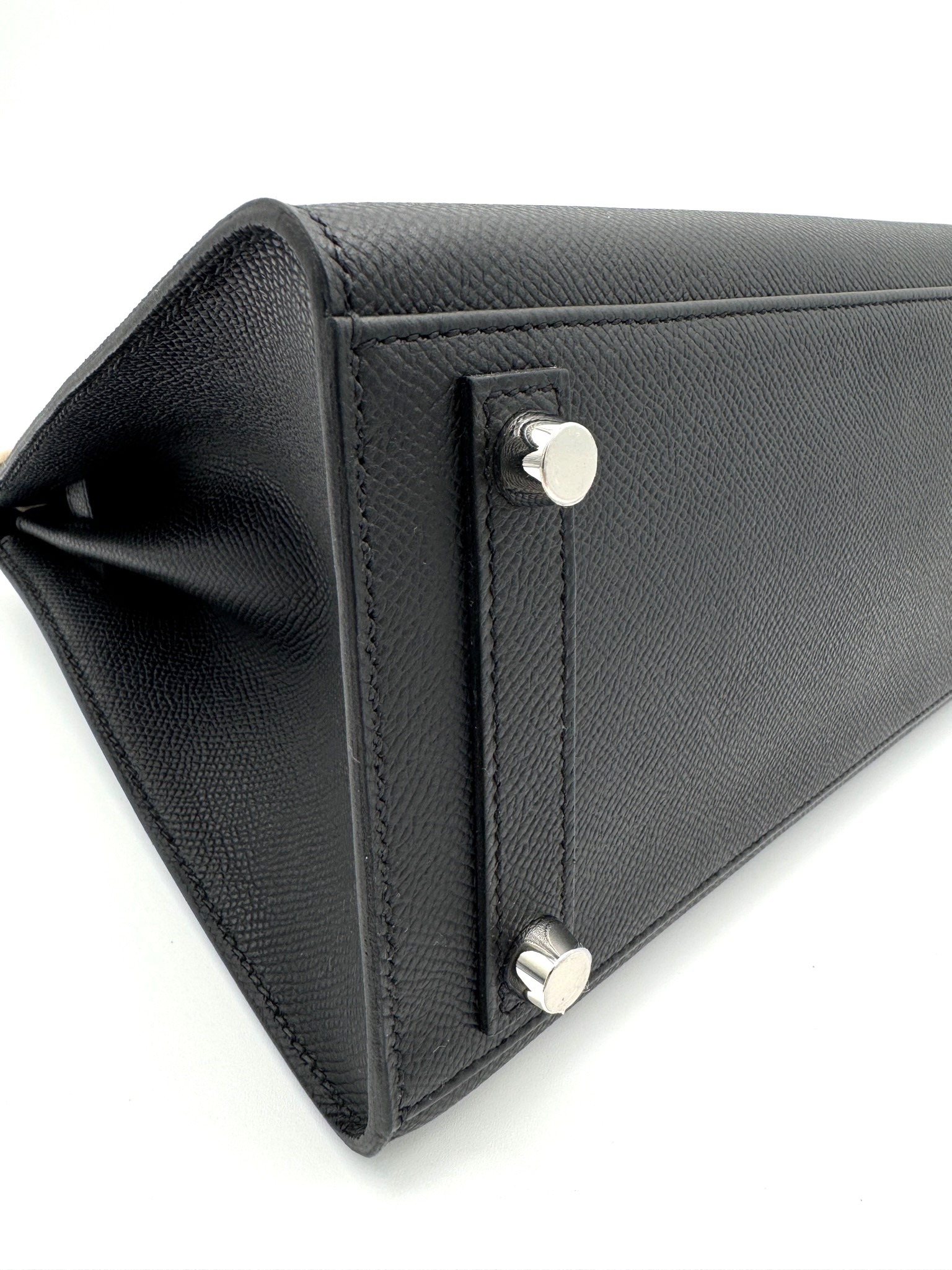 An elegant Hermes bag that is beautifully handcrafted in Epsom calfskin leather and features rolled leather top handles with palladium hardware. The bag opens to a goatskin leather interior with zipper and pockets.