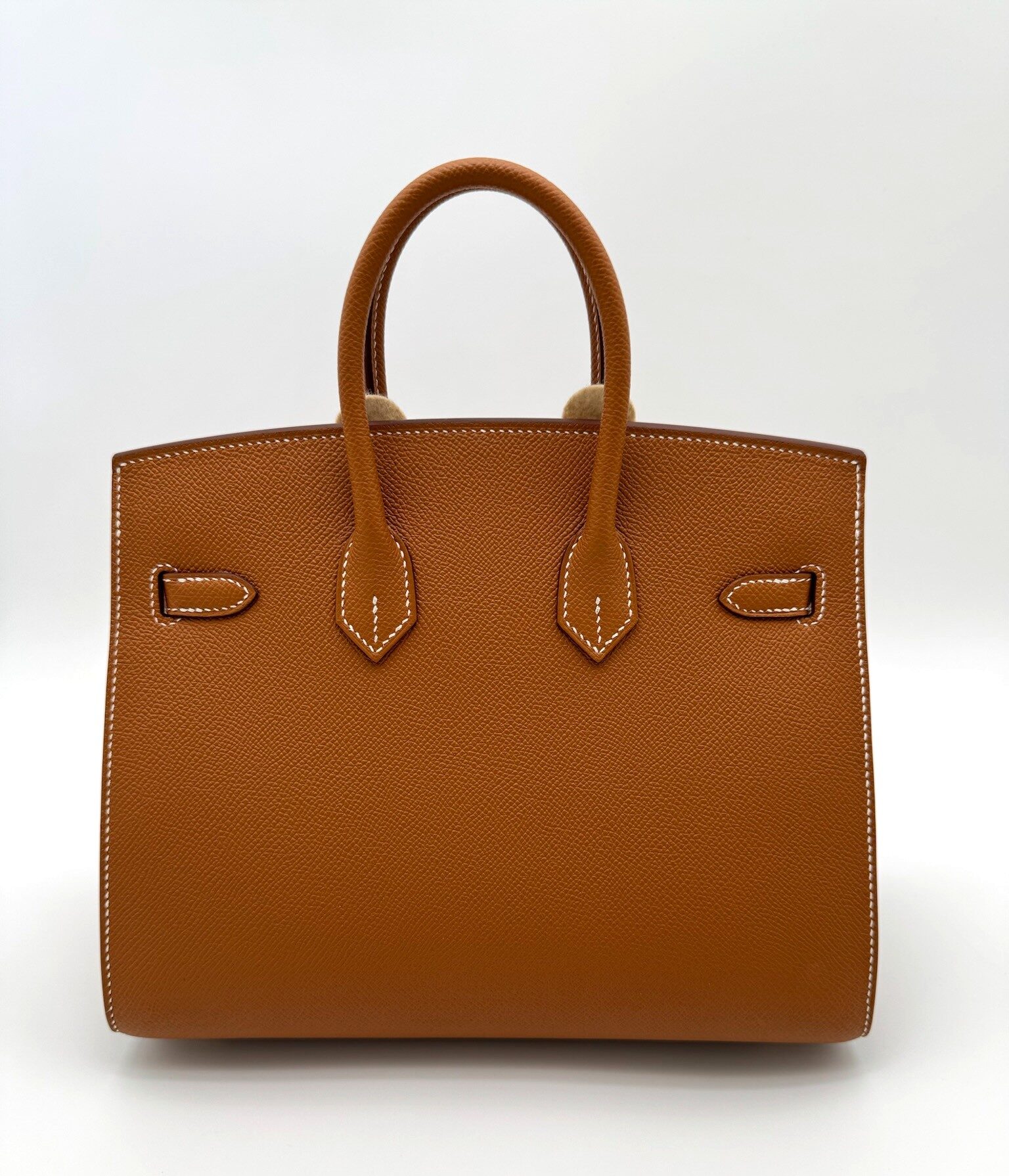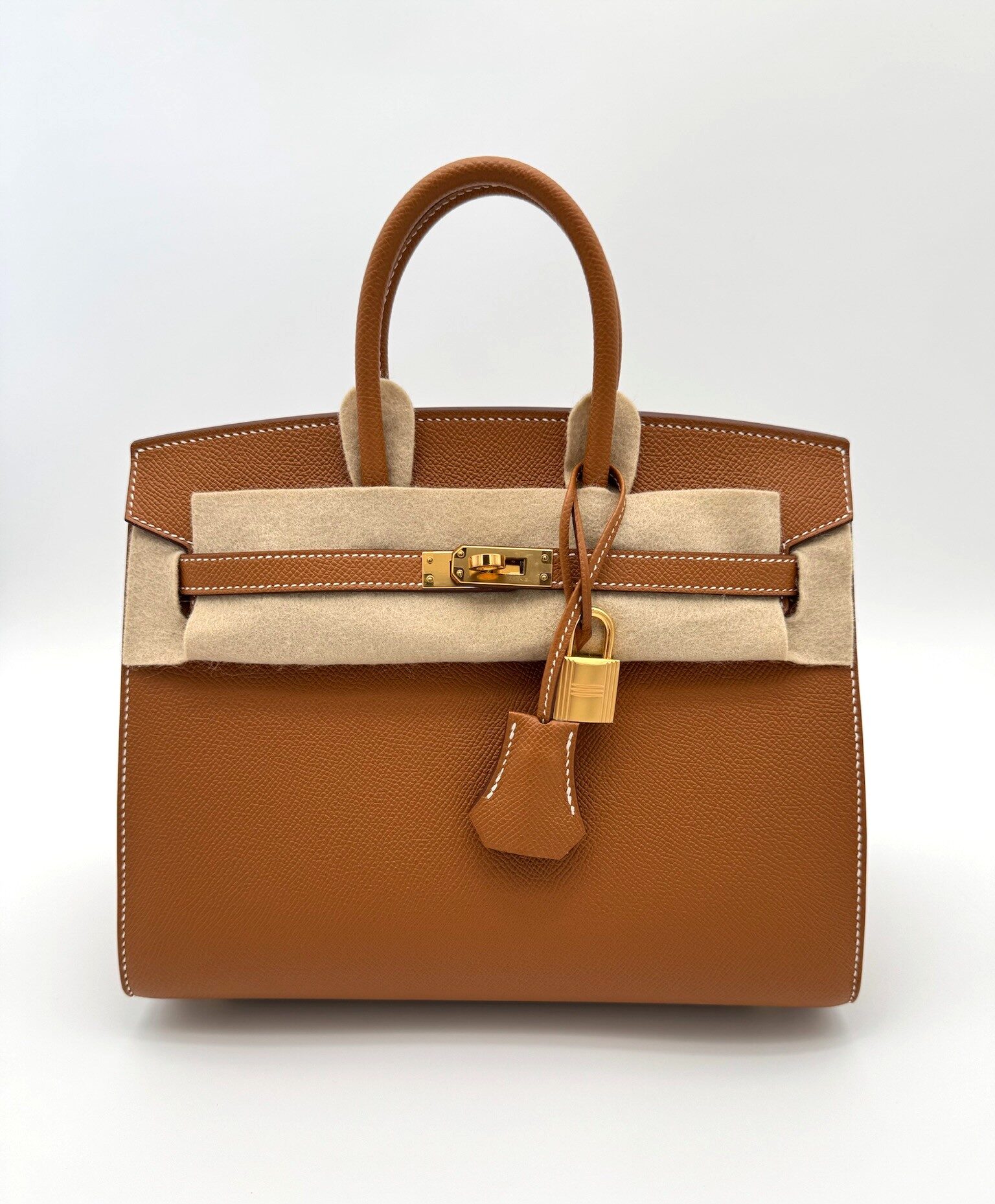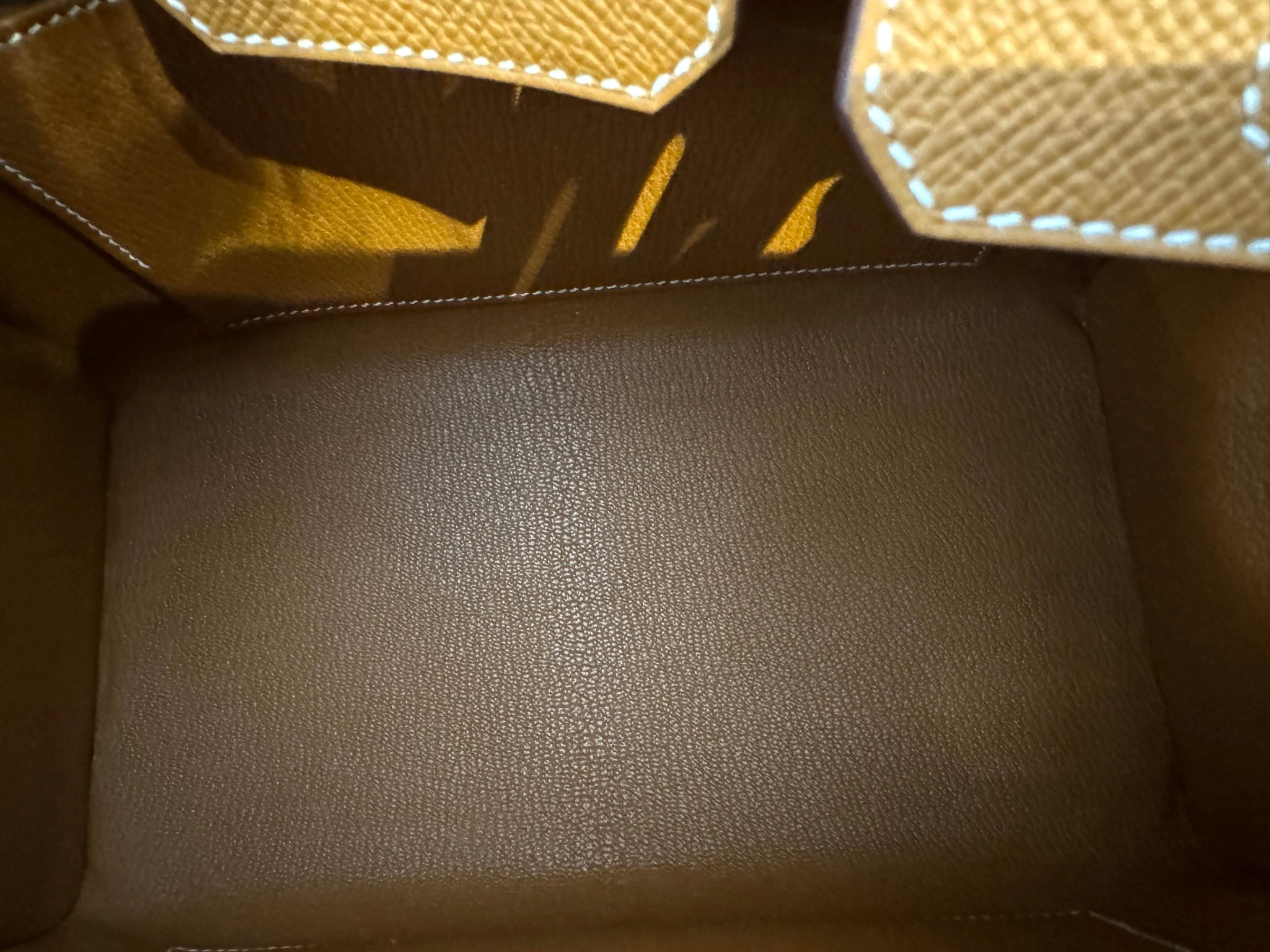 An elegant Hermes bag that is beautifully handcrafted in Epsom calfskin leather and features rolled leather top handles with yellow gold hardware. The bag opens to a goatskin leather interior with zipper and pockets.