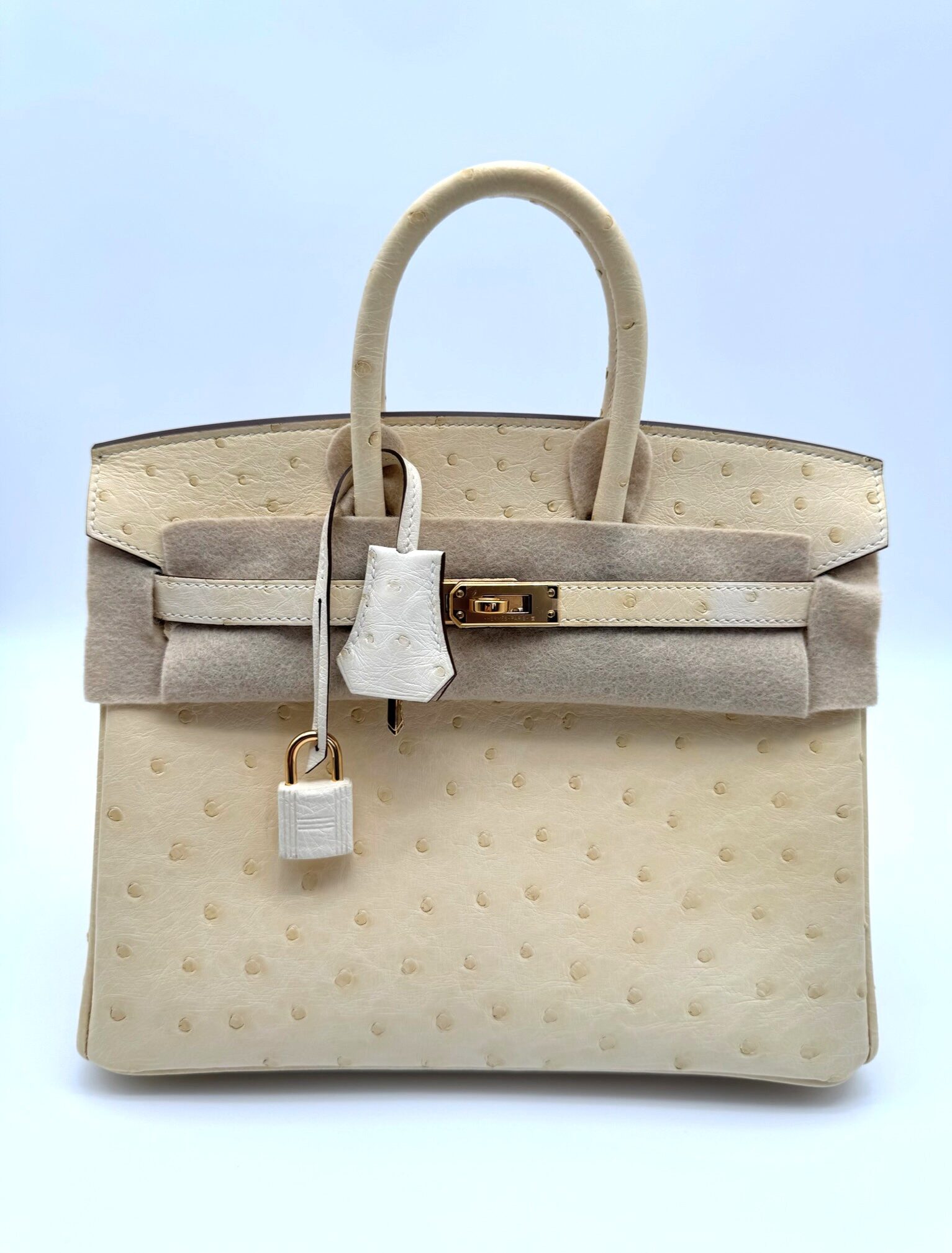 Birkin 25 Retourne Ostrich Nata Boreal GHW