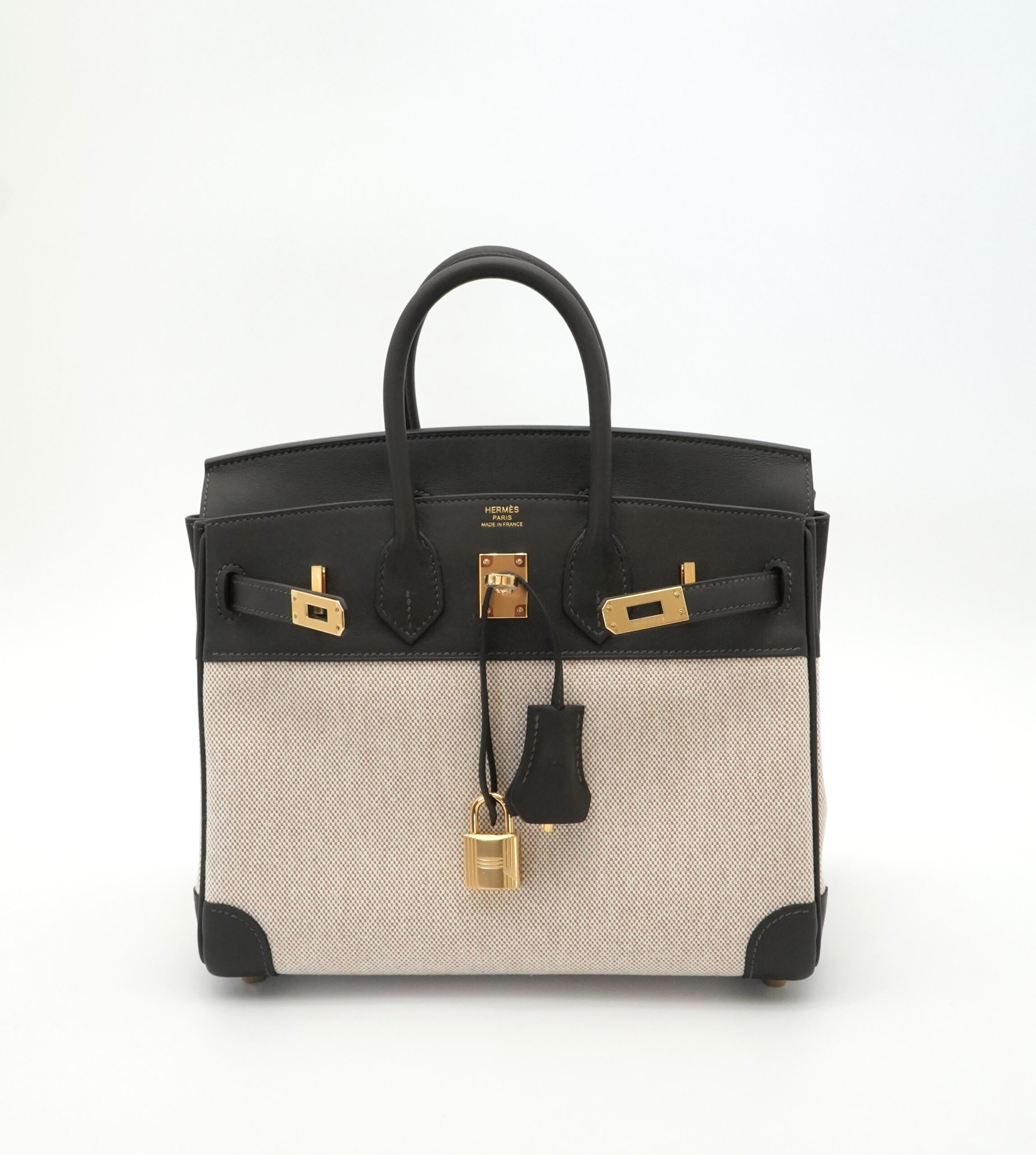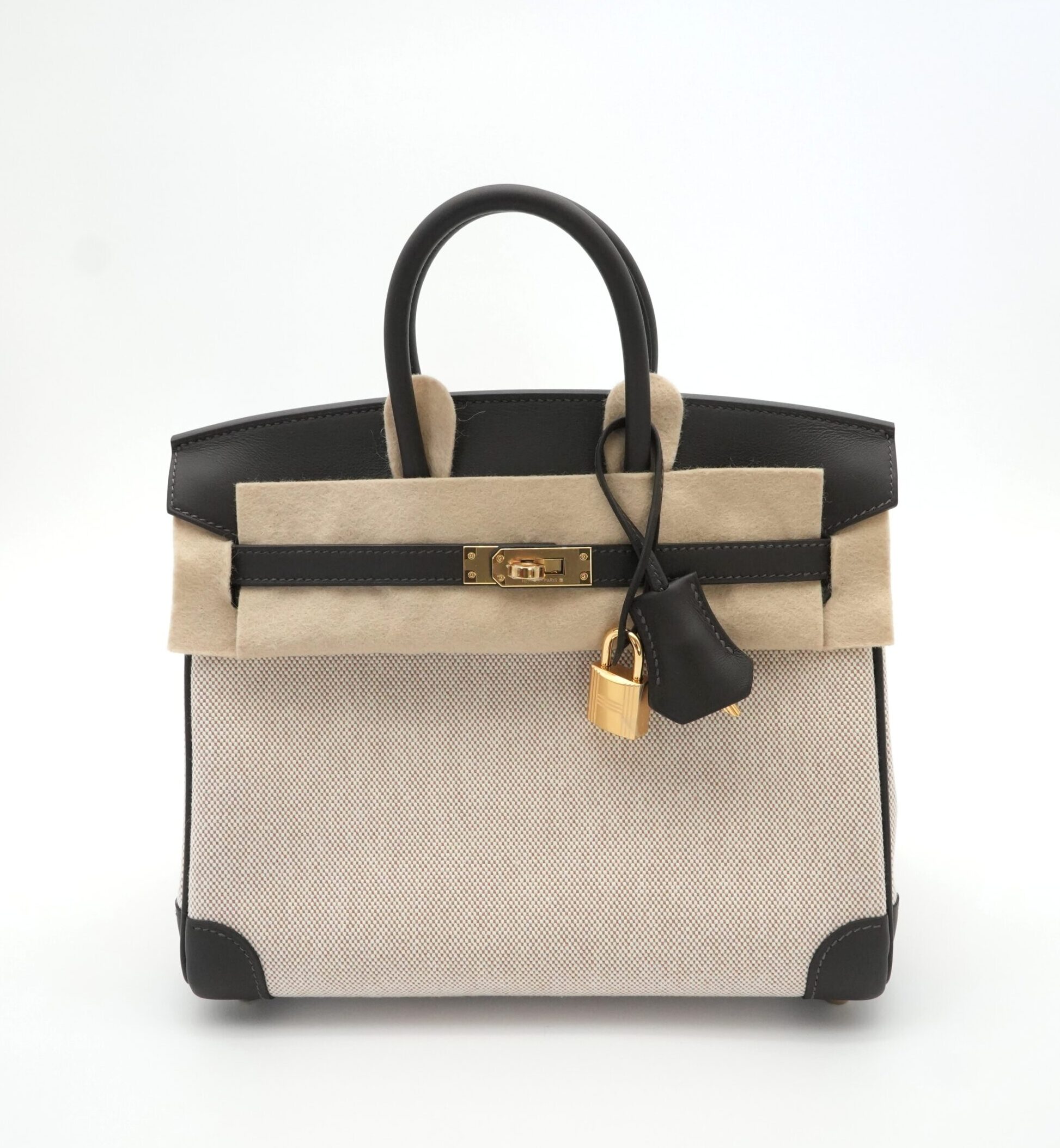 Birkin 25 Swift Bai Brun Canvas Ecru Beige GHW