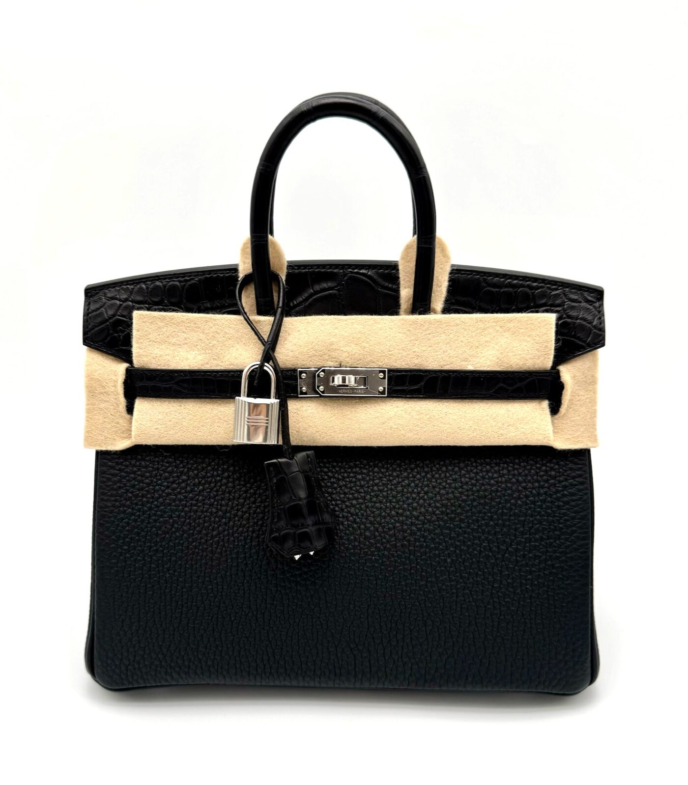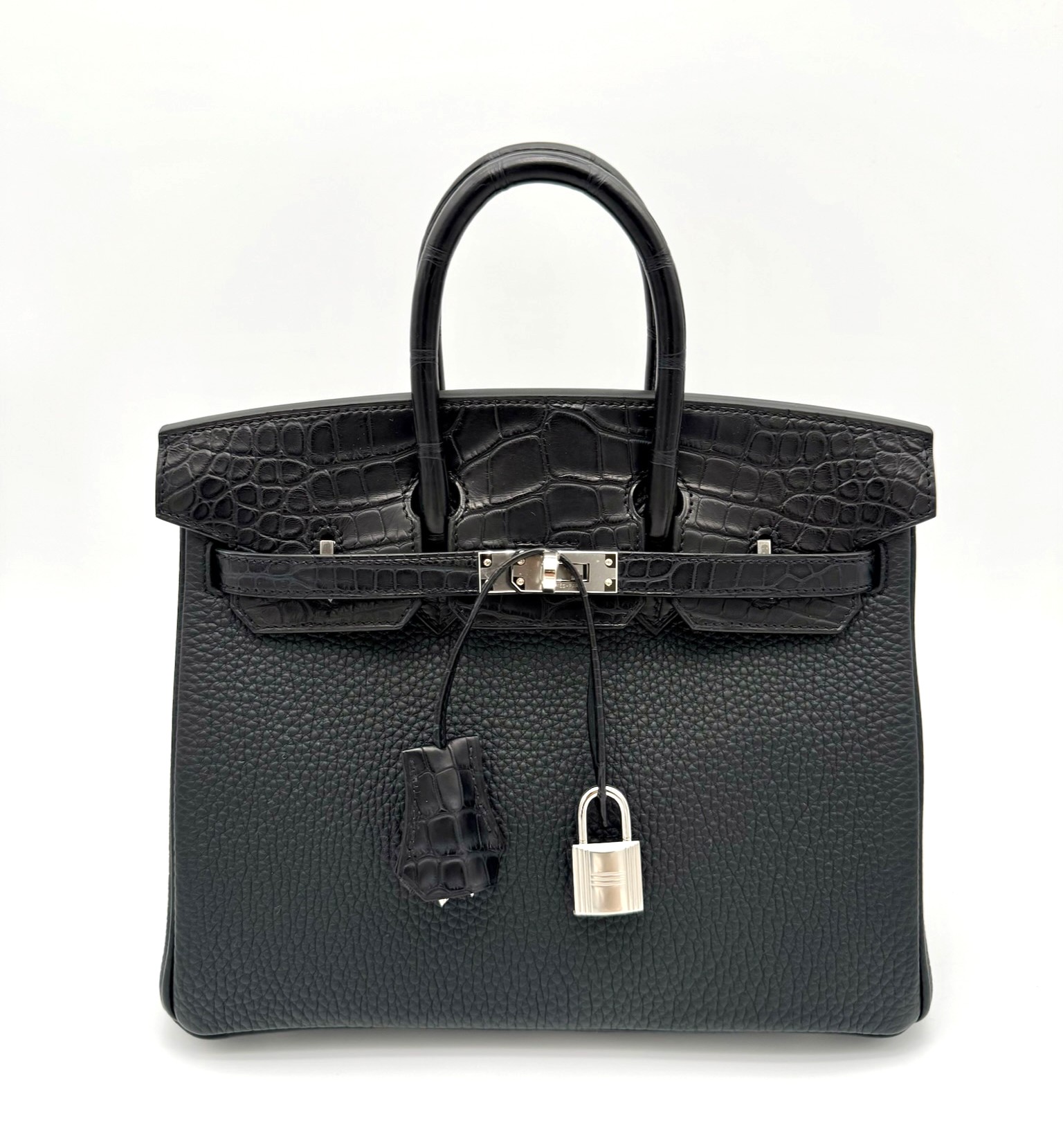 Birkin 25 Togo Black Matte Alligator Touch PHW