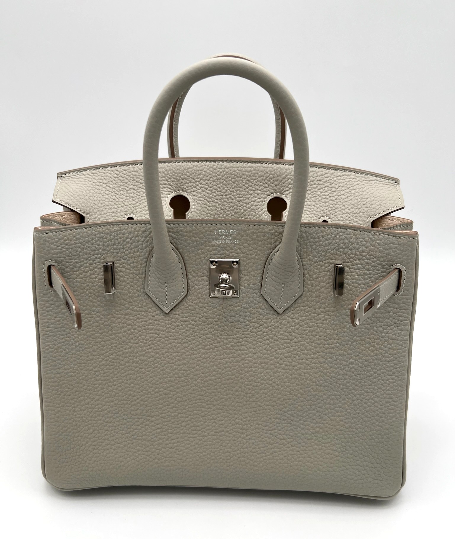 Birkin 25 Togo Gris Perle / Nata Verso PHW