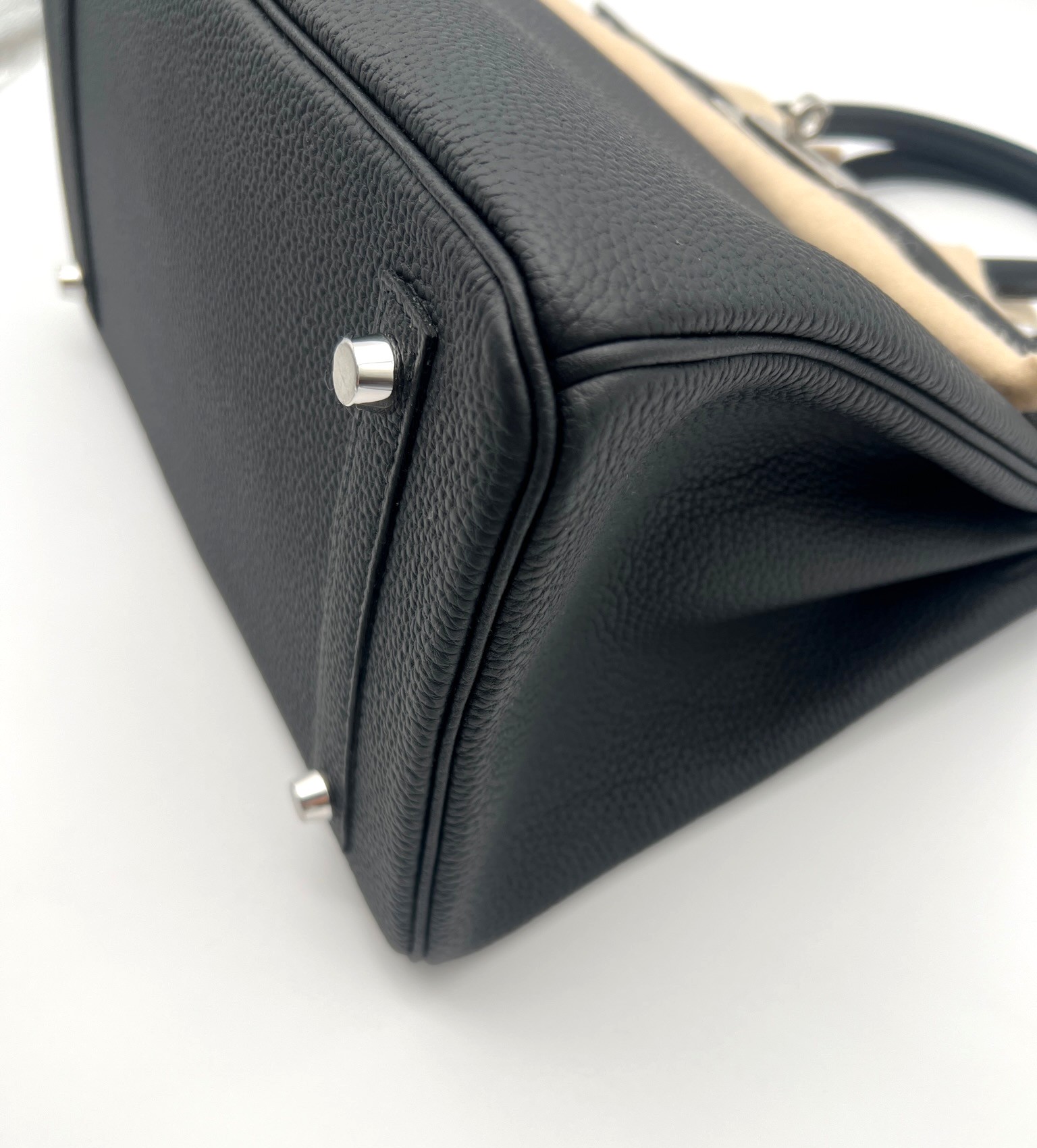 A classic Hermes bag that is beautifully handcrafted in Togo calfskin leather and features rolled leather top handles with palladium hardware. The bag opens to a goatskin leather interior with zipper and pockets.