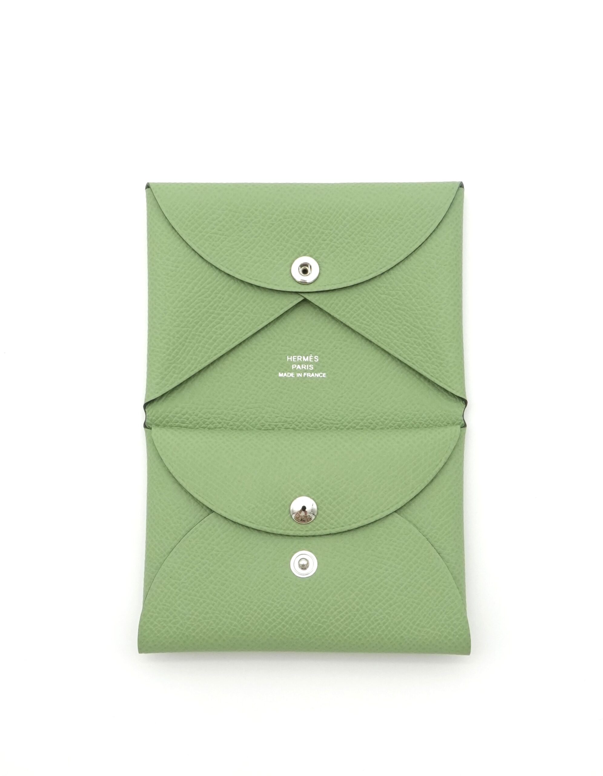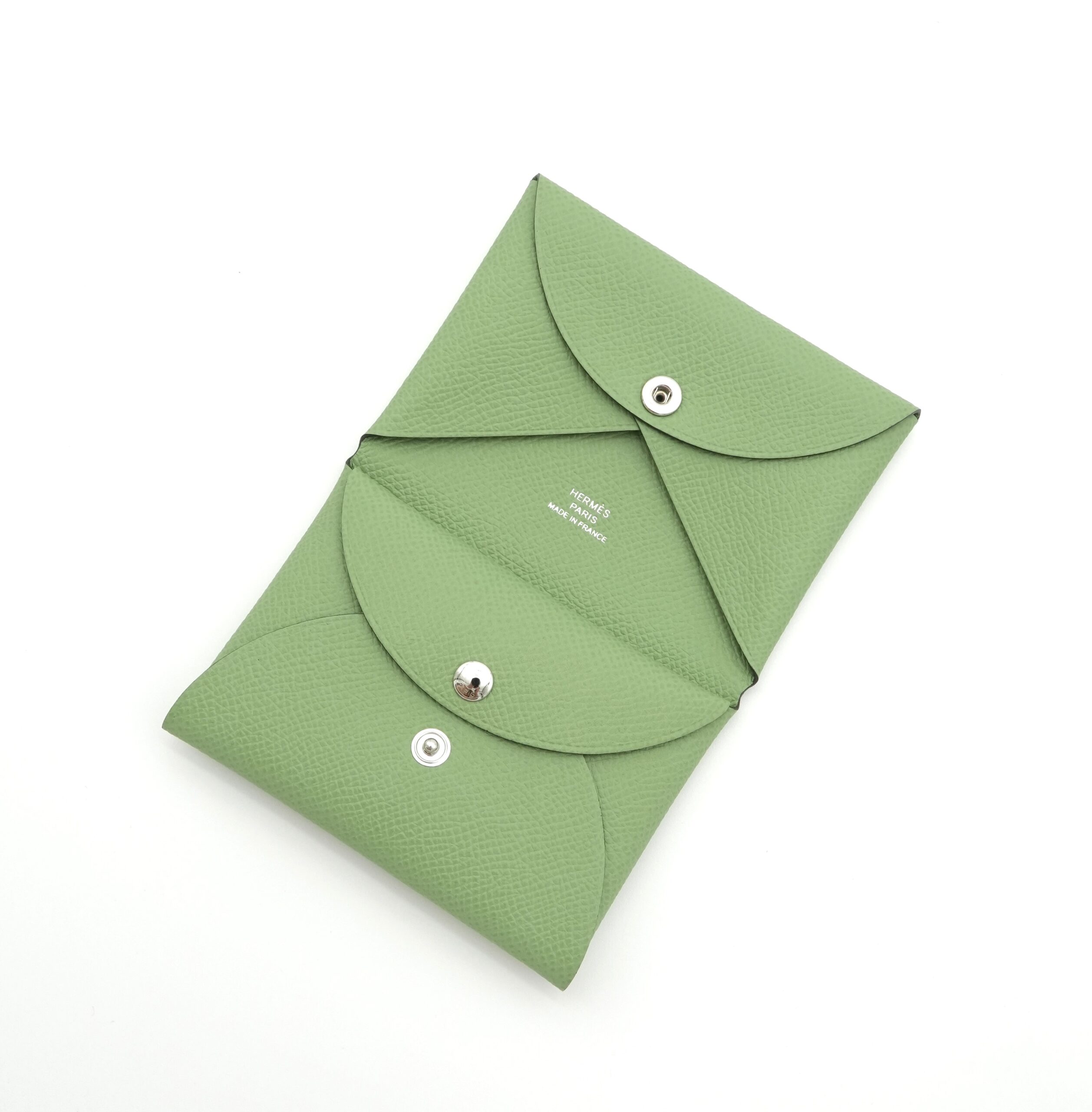 This card holder features a snap closure that opens like an origami with two folded pockets.