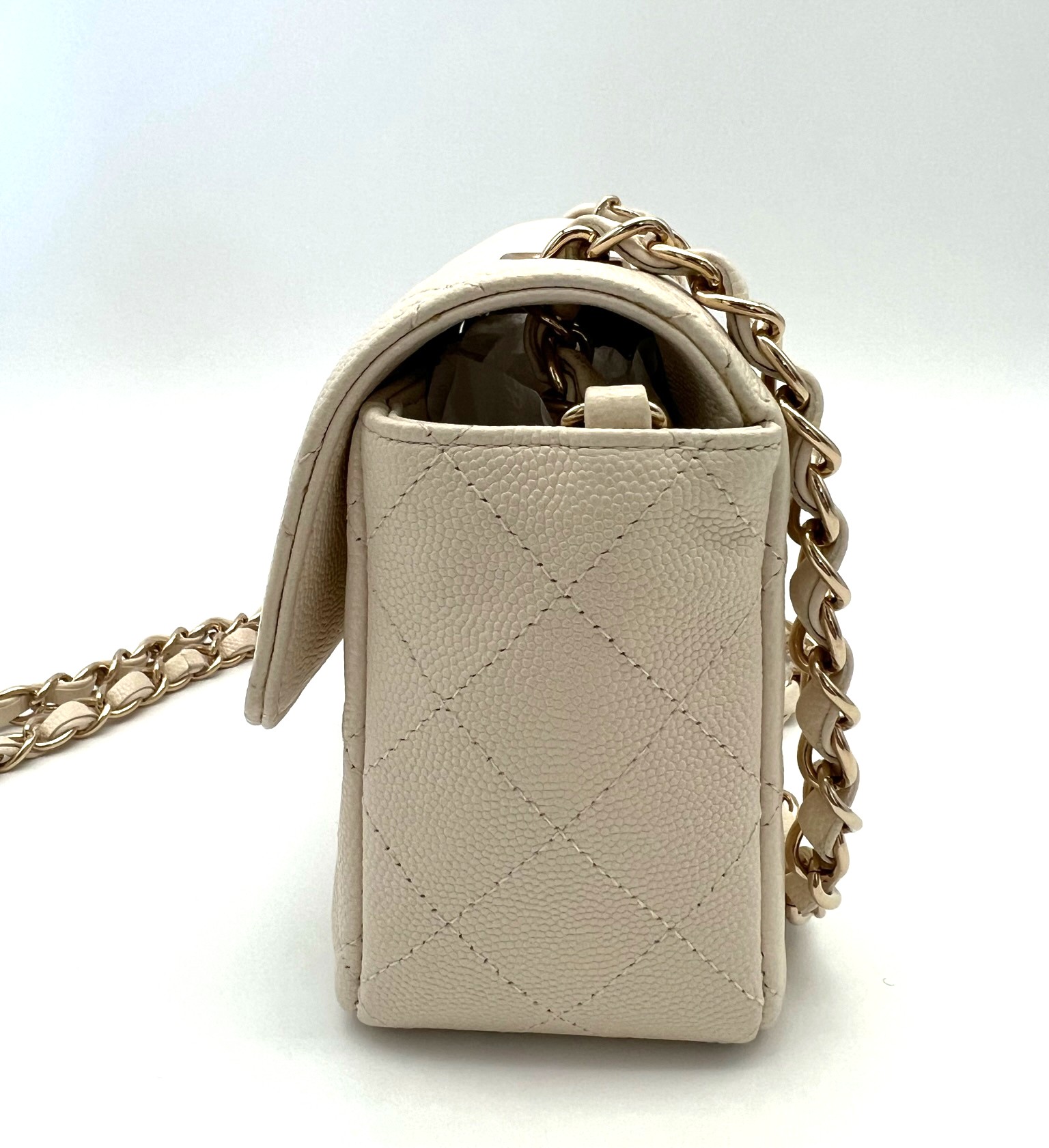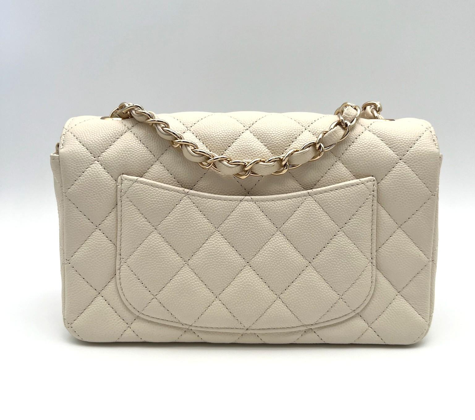Caviar Quilted Mini Rectangular Flap Bag Beige