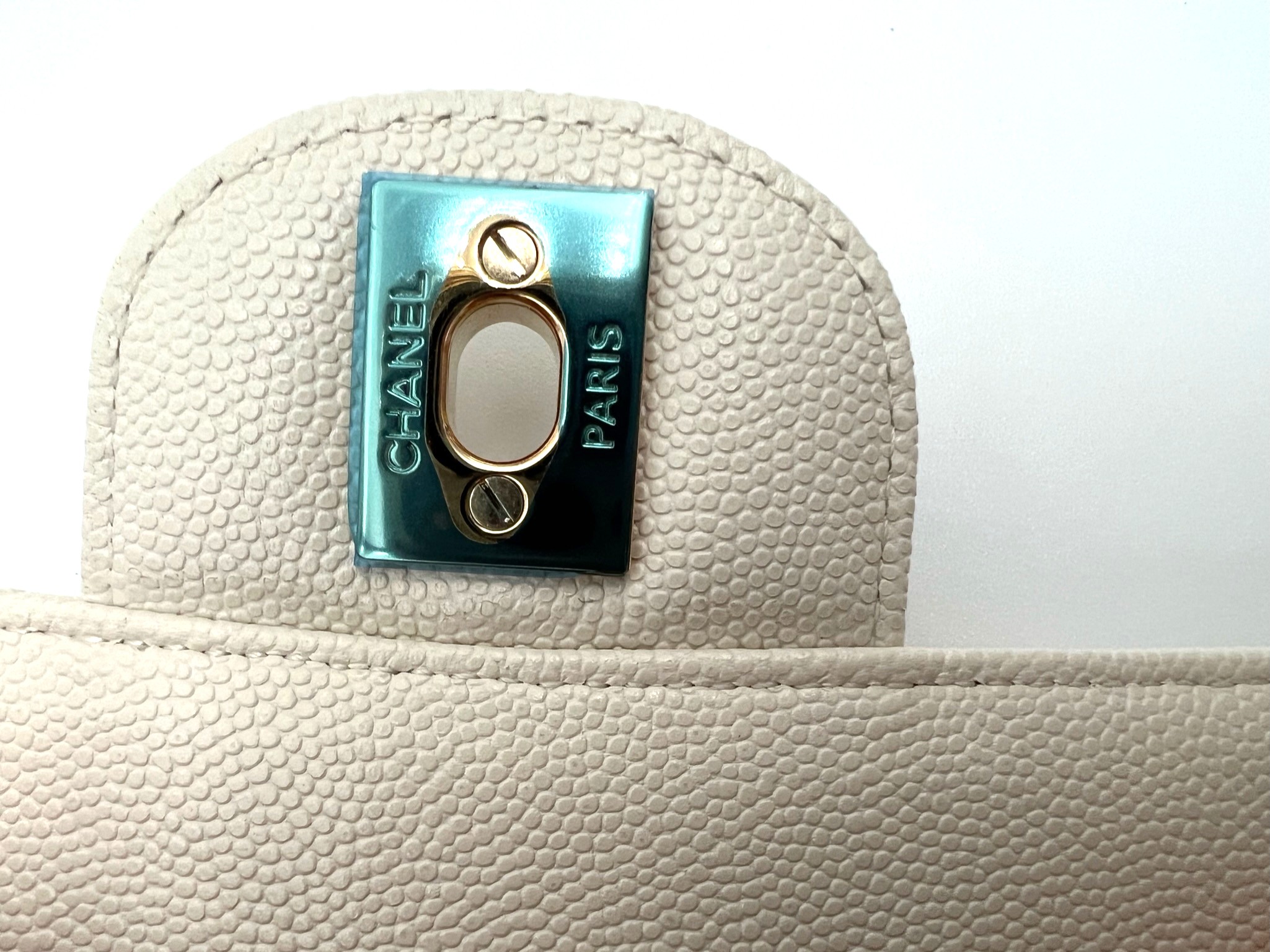 This iconic rectangular mini flap bag is both functional and elegant with edge-stitching, chain strap and classic CC turnlock closure. Chanel discontinued caviar rectangular mini flap bags since 2018 so don’t miss out on owning this highly sought, timeless piece!