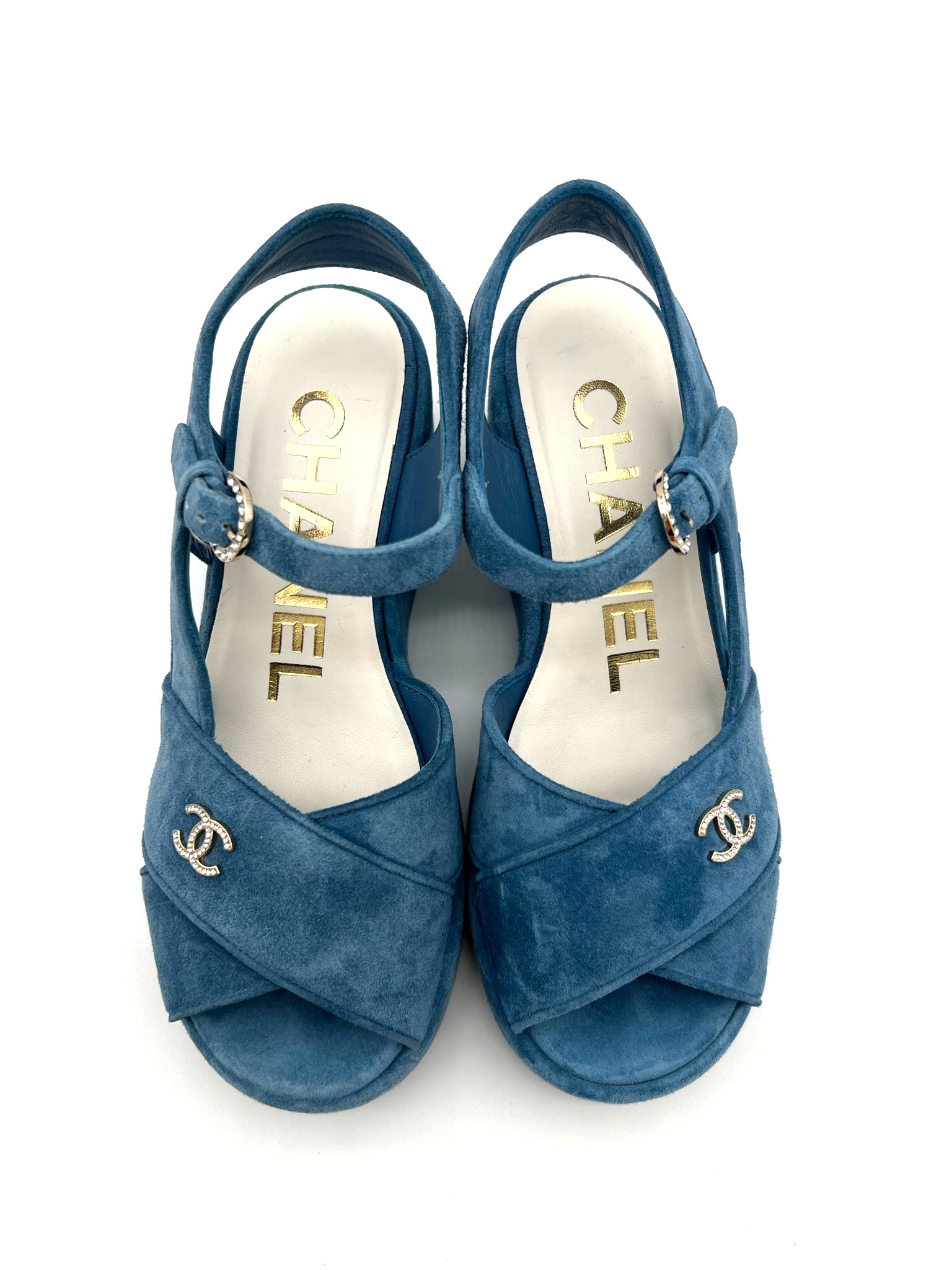 Rhinestone CC Logo Suede Sandals Size 36.5