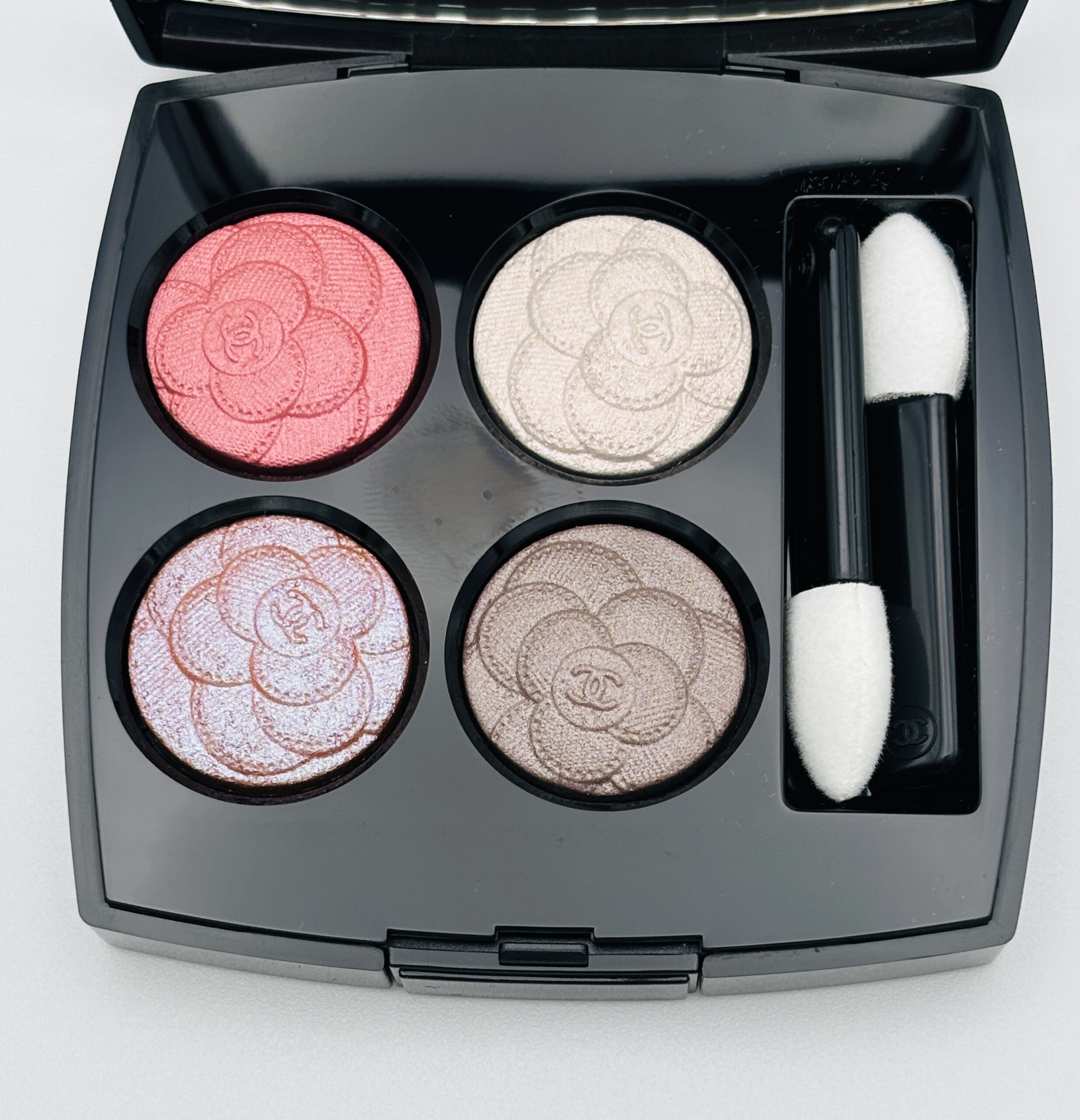 Embossed with a camellia design, this eyeshadow palette with its iridescent shimmer transforms your eyes into fun elegance!