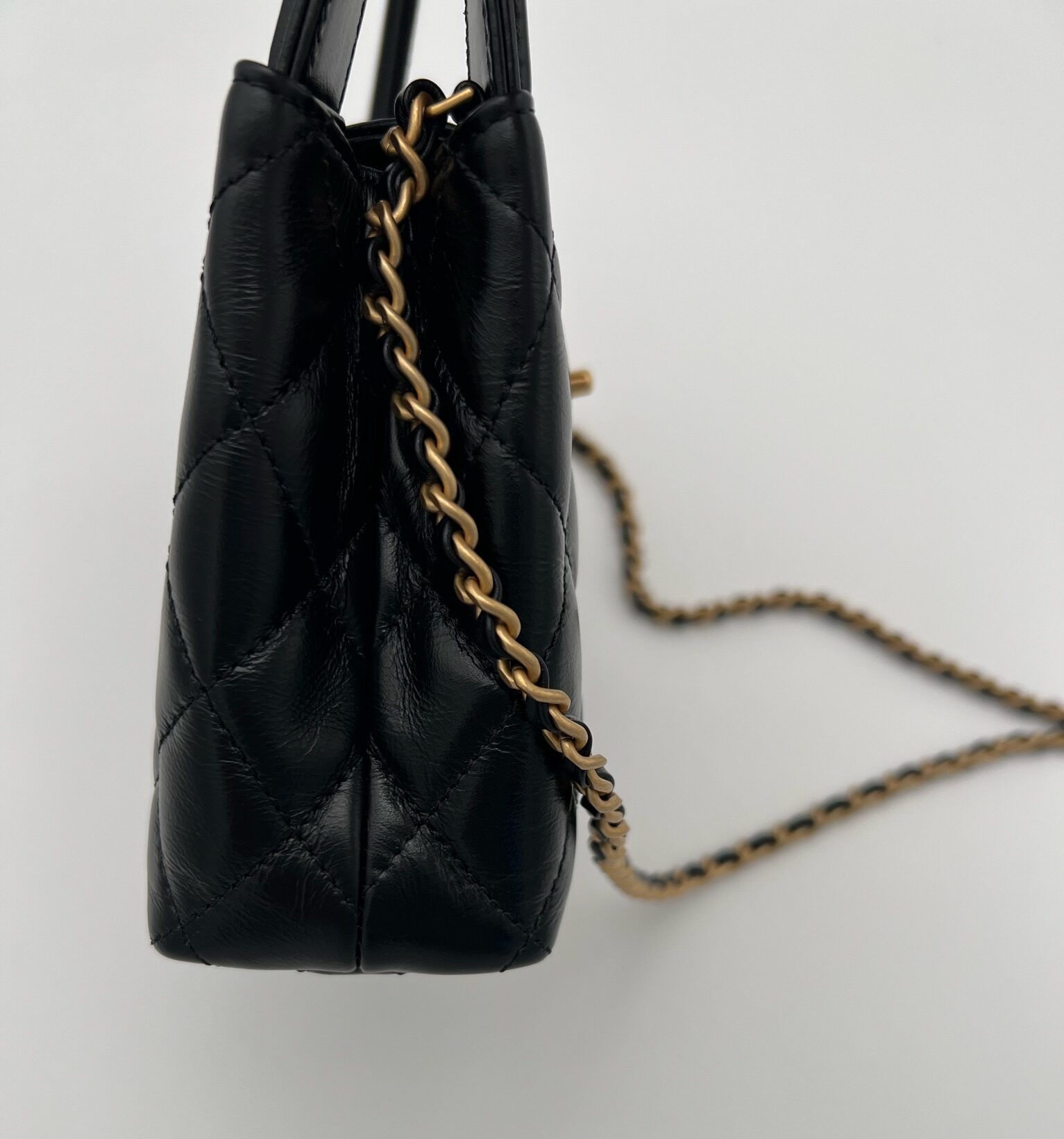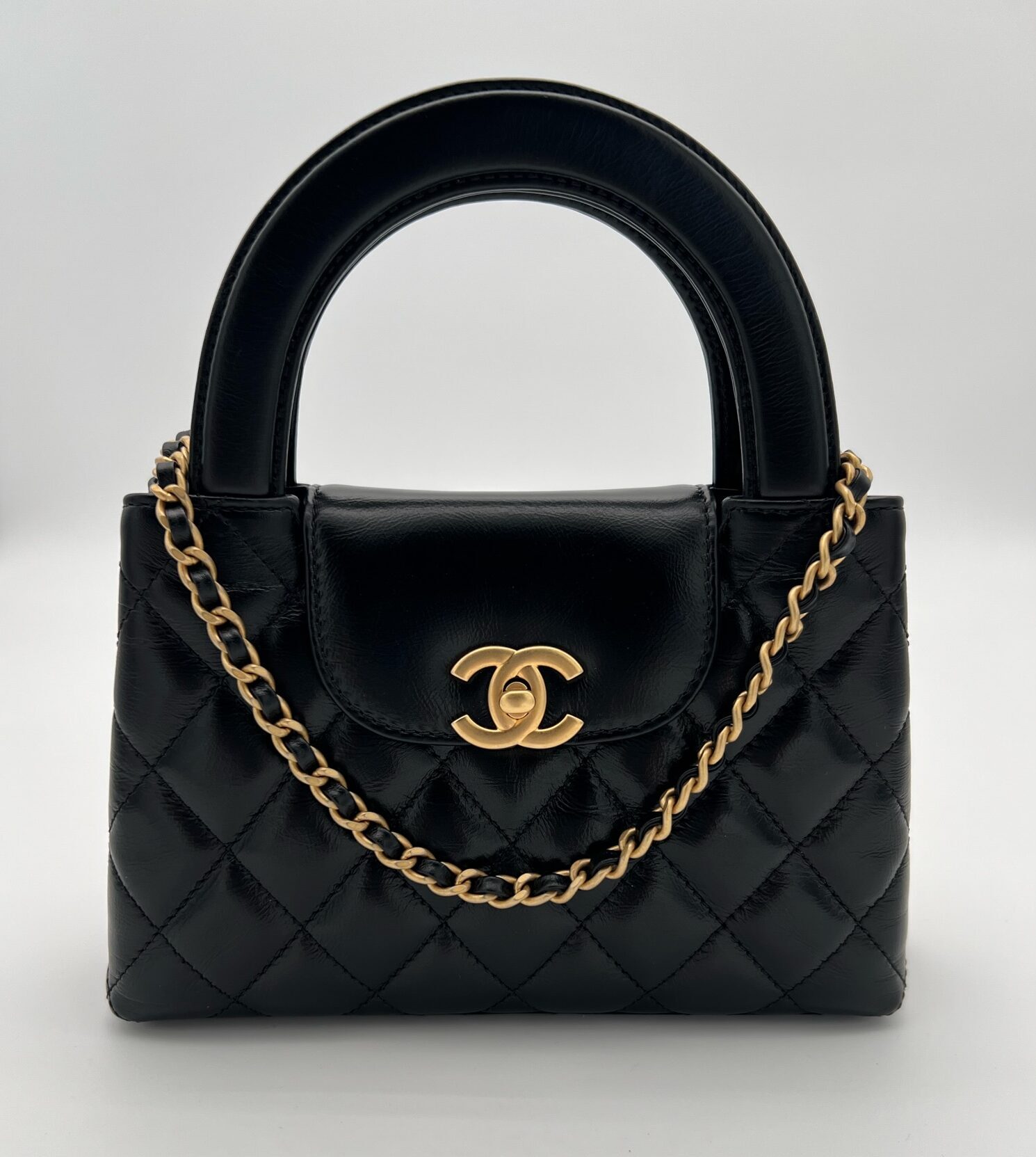 Nano Kelly Shopping Bag Shiny Aged Calfskin Black