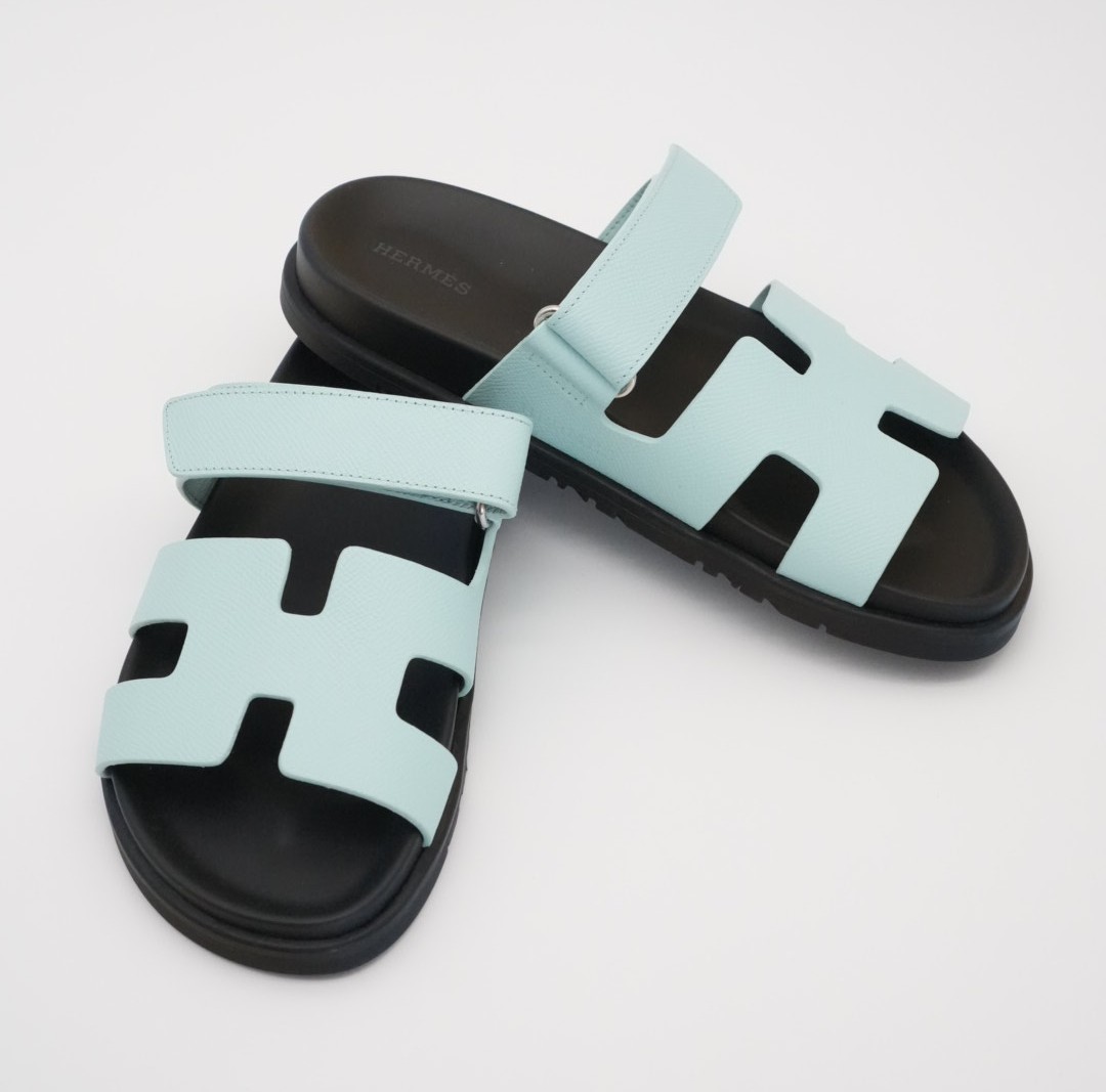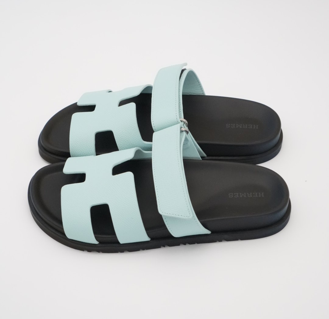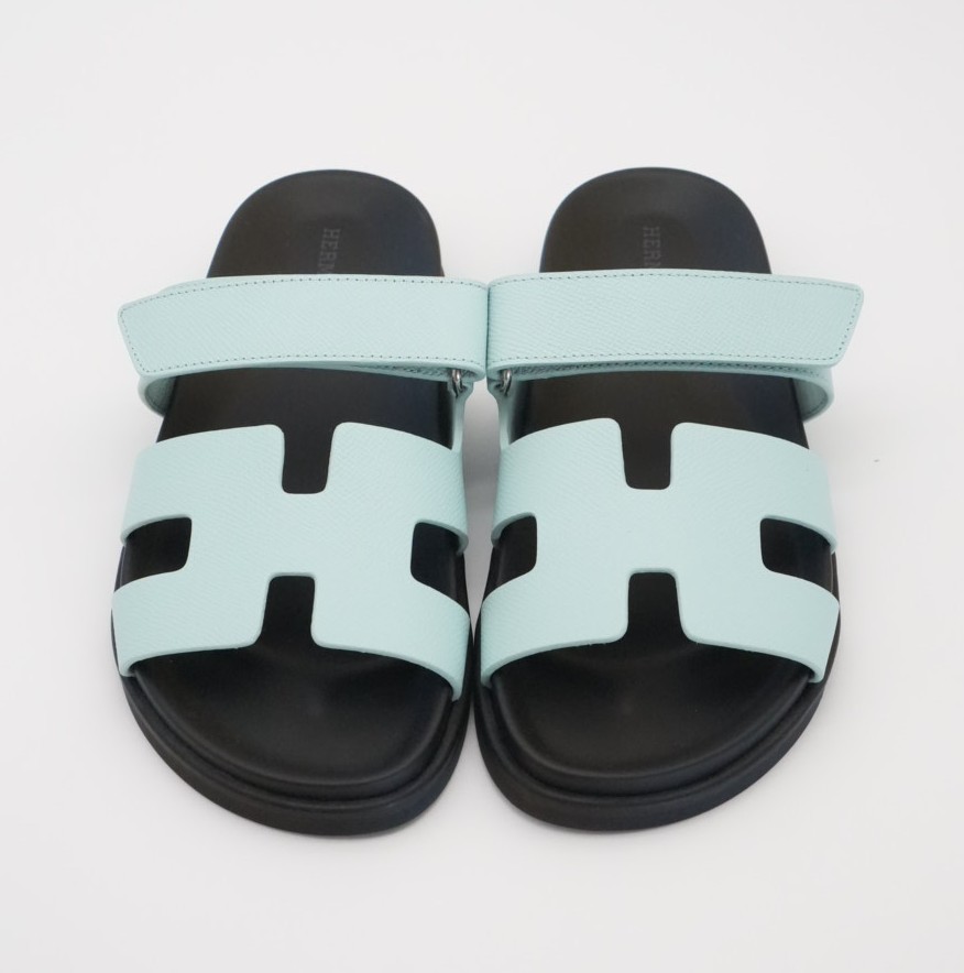 Casual, comfortable Epsom “H” cut-out sandal with anatomical rubber sole and adjustable strap.