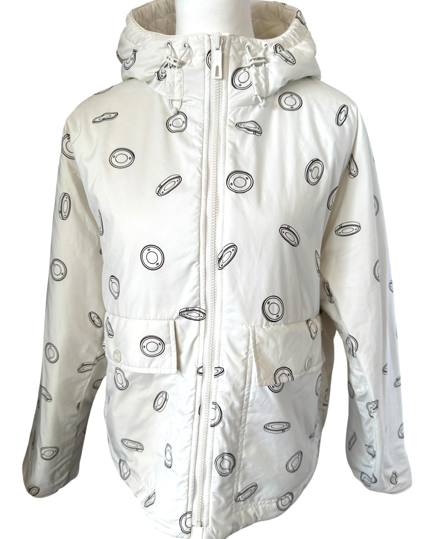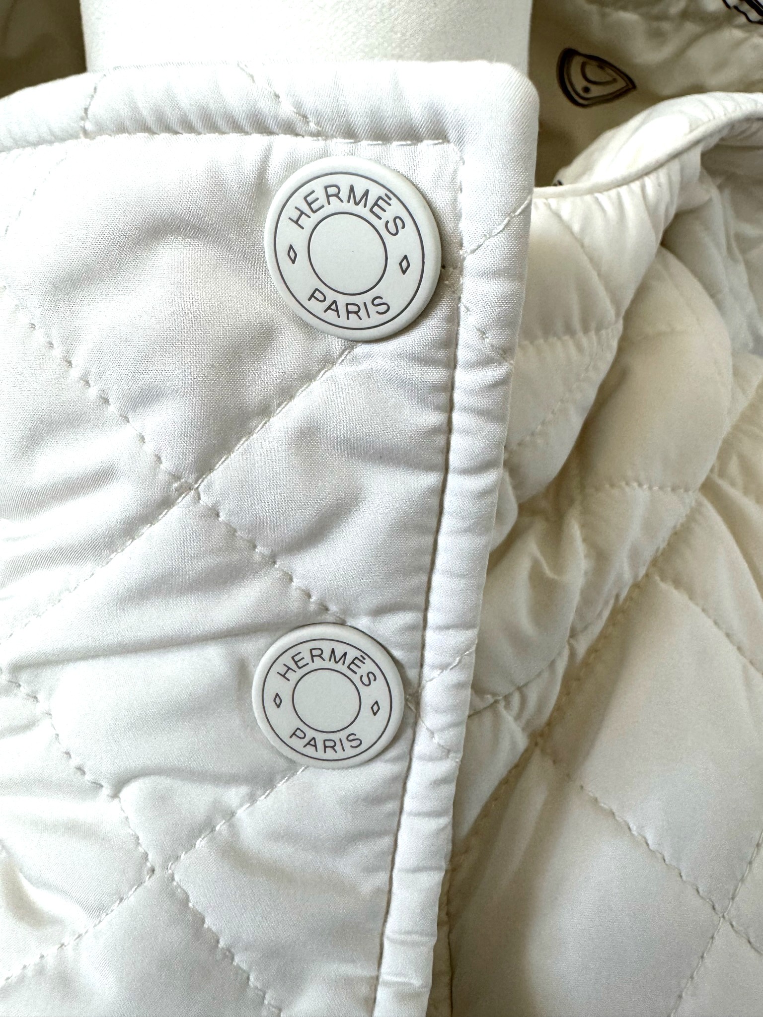 A reversible quilted jacket that has printed Clou de Selle Semis. This warm and cozy jacket is a perfect addition to your wardrobe!