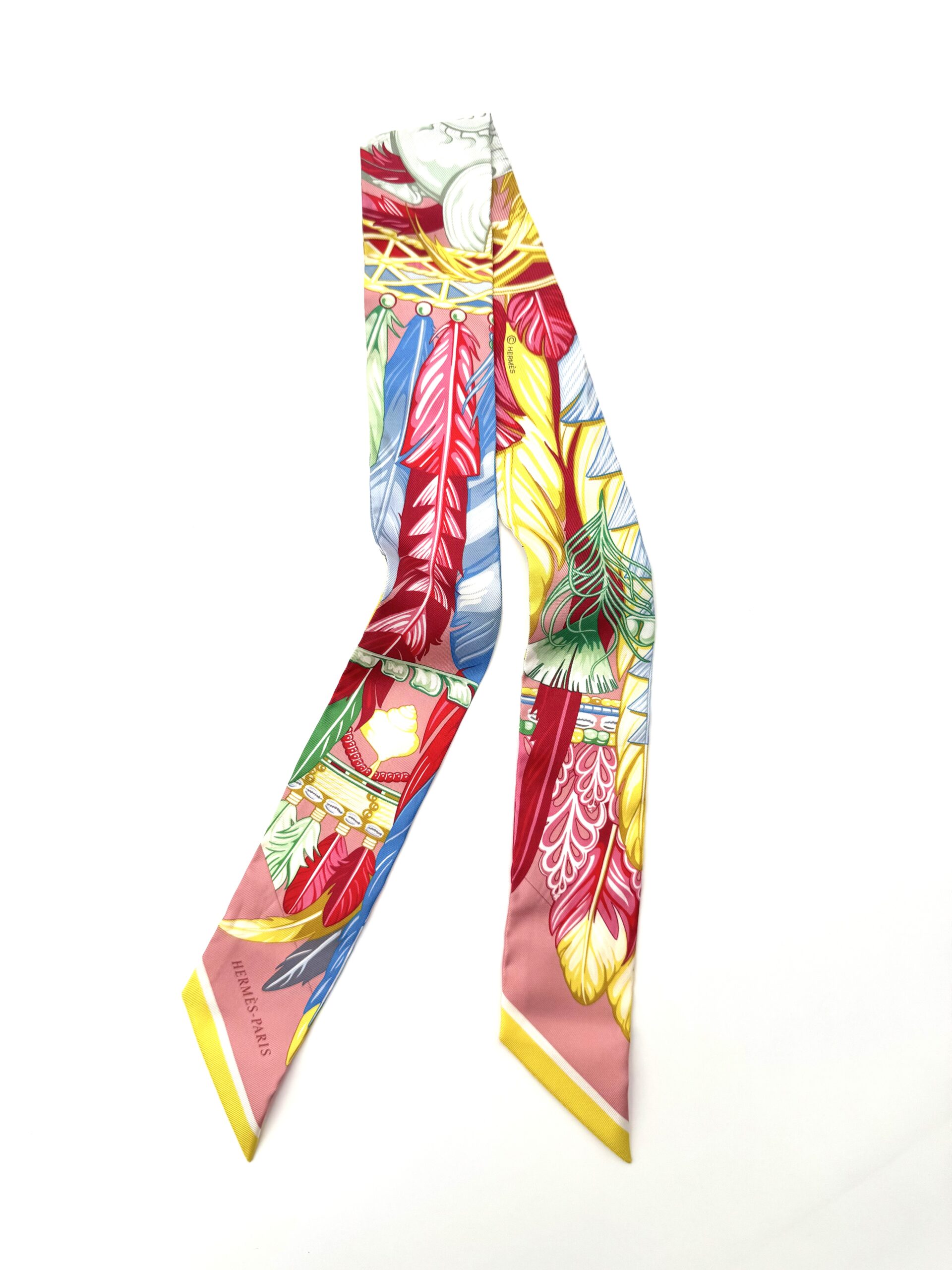 A unique, whimsical silk twilly that can be worn in many ways. 100% silk