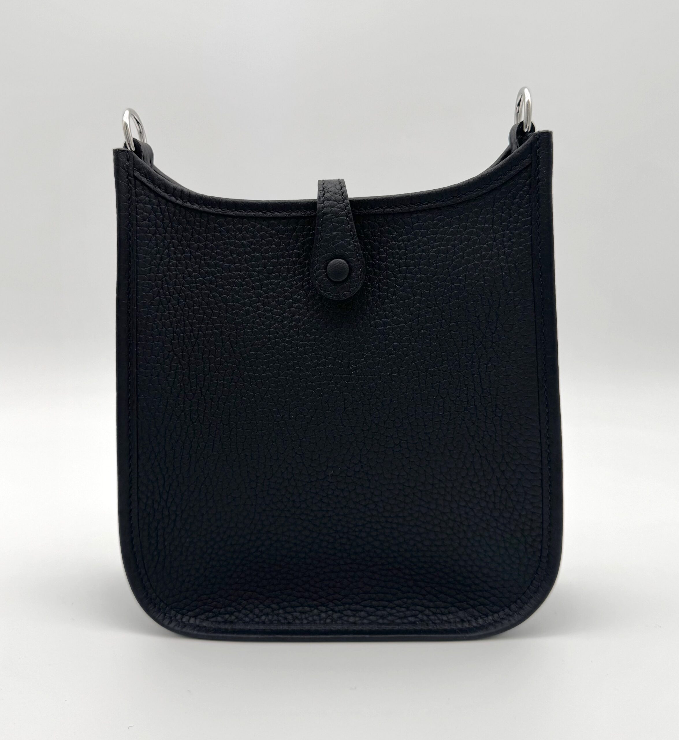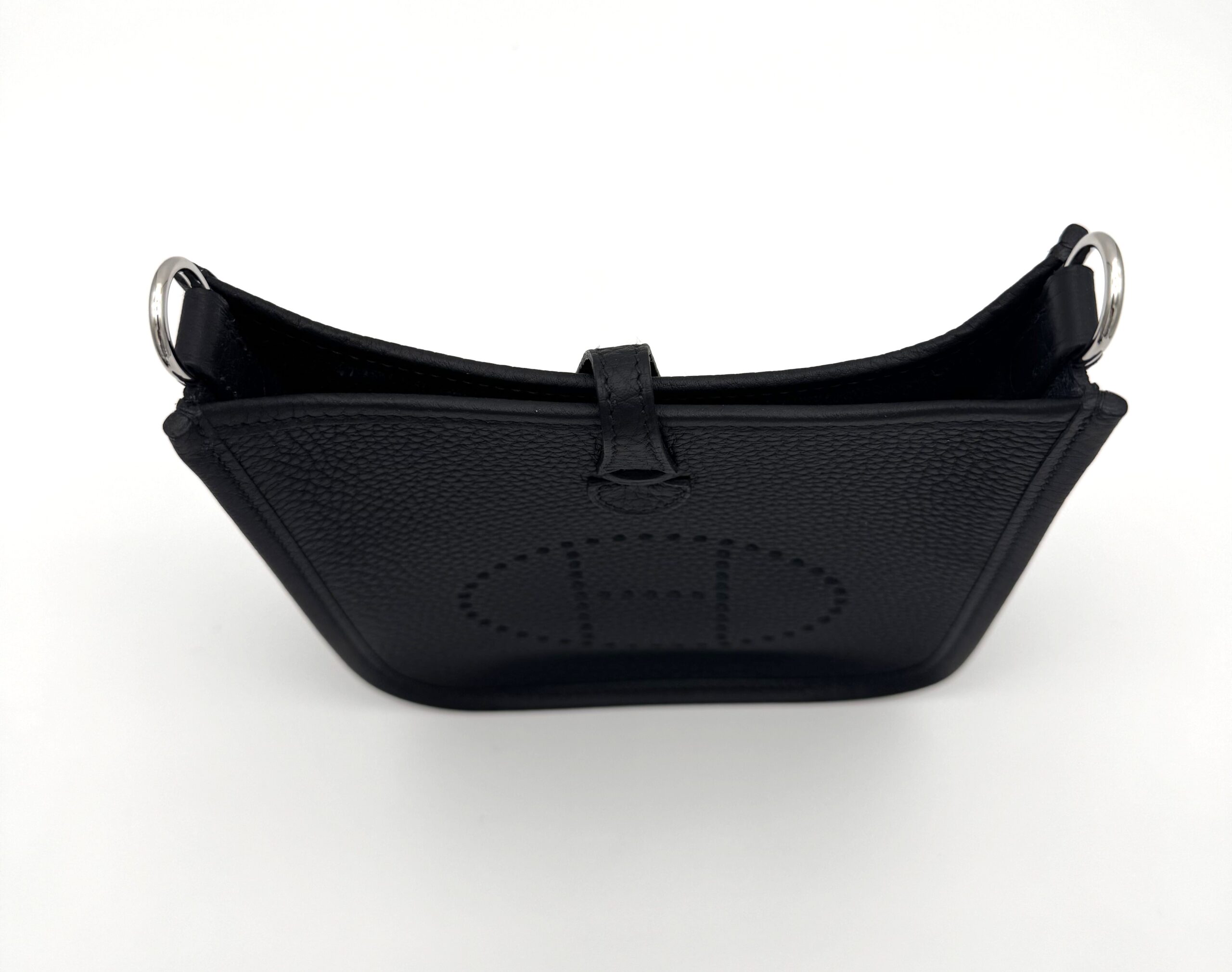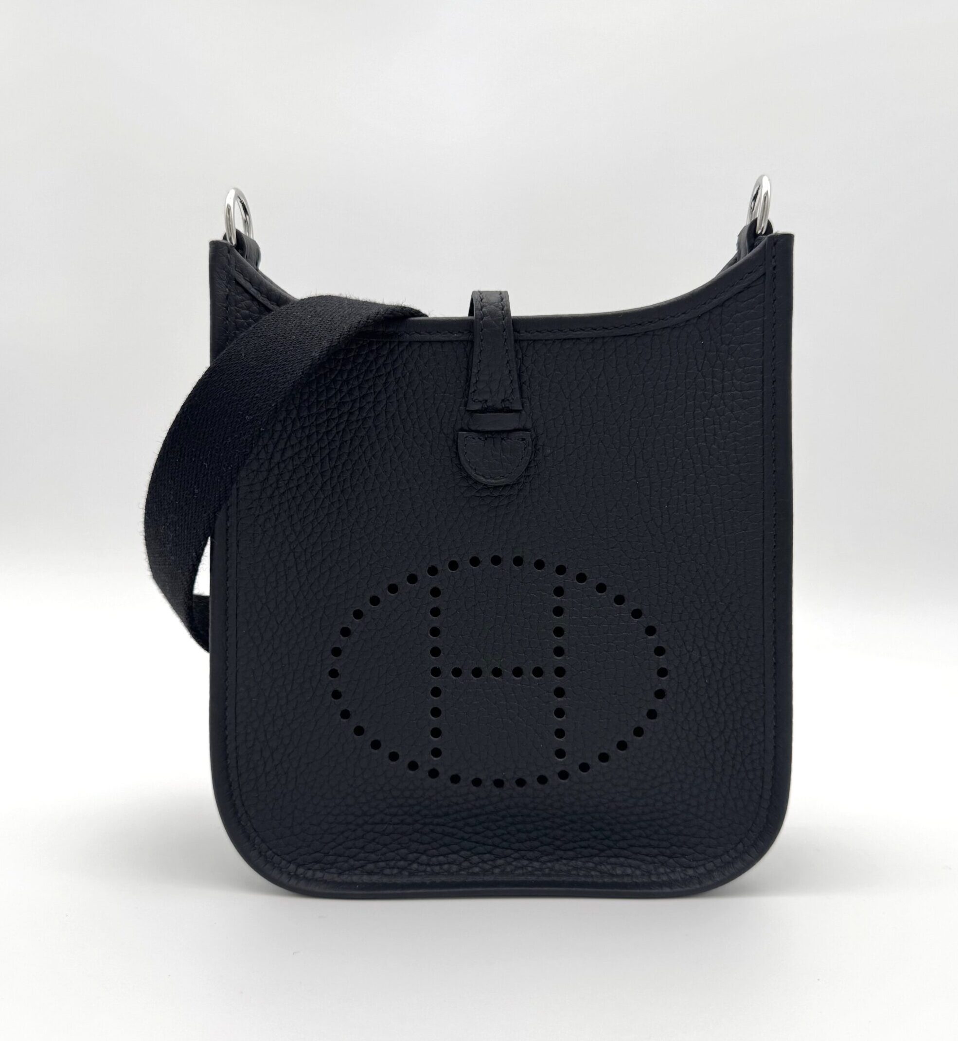 The Evelyne TPM is a petite crossbody messenger bag that is practical and casual, perfect for carrying essentials such as phone, wallet and keys. The bag features an Amazone canvas strap and palladium hardware with a perforated H inside an oval on the front of the bag.