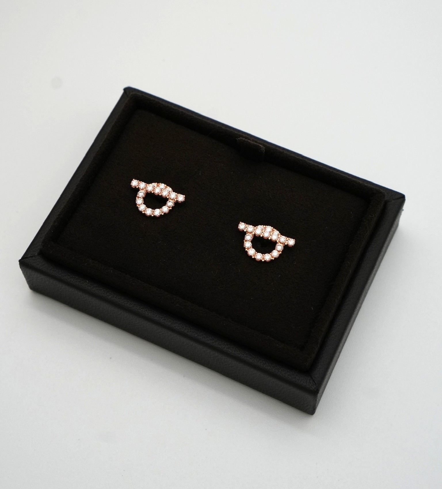 Timeless earrings in rose gold set with diamonds. The signature toggle clasp motif effortlessly combines practicality and class.