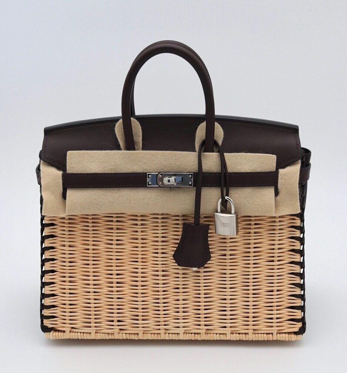 A collector’s must-have, this exquisite piece is a unique pairing of wicker and swift leather trim. Don’t miss out on an opportunity of owning a timeless, sophisticated craftsmanship piece of work!