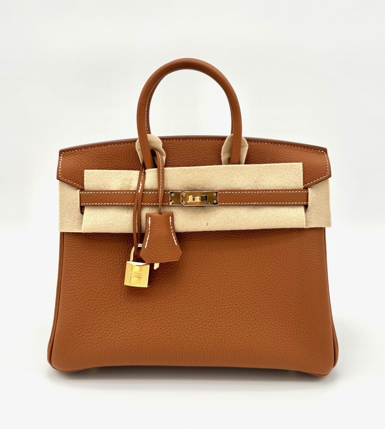 A classic Hermes bag that is beautifully handcrafted in Togo calfskin leather and features rolled leather top handles with yellow gold hardware. The bag opens to a goatskin leather interior with zipper and pockets.