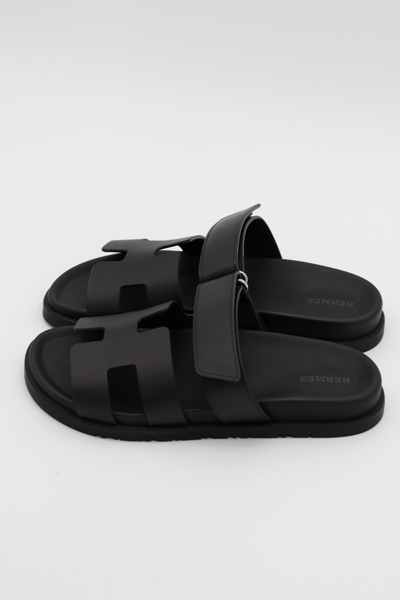 Casual, comfortable calfskin “H” cut-out sandal with anatomical rubber sole and adjustable strap.
