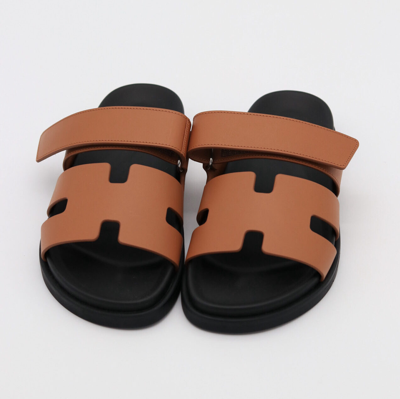 Casual, comfortable calfskin “H” cut-out sandal with anatomical rubber sole and adjustable strap.