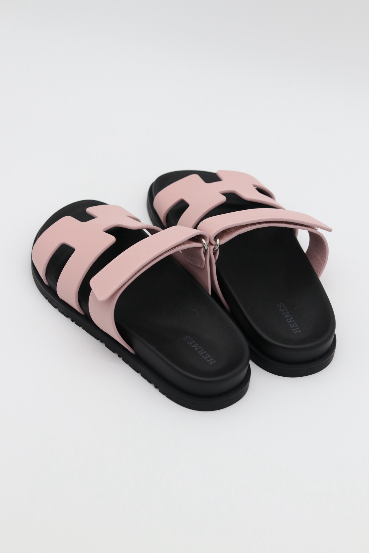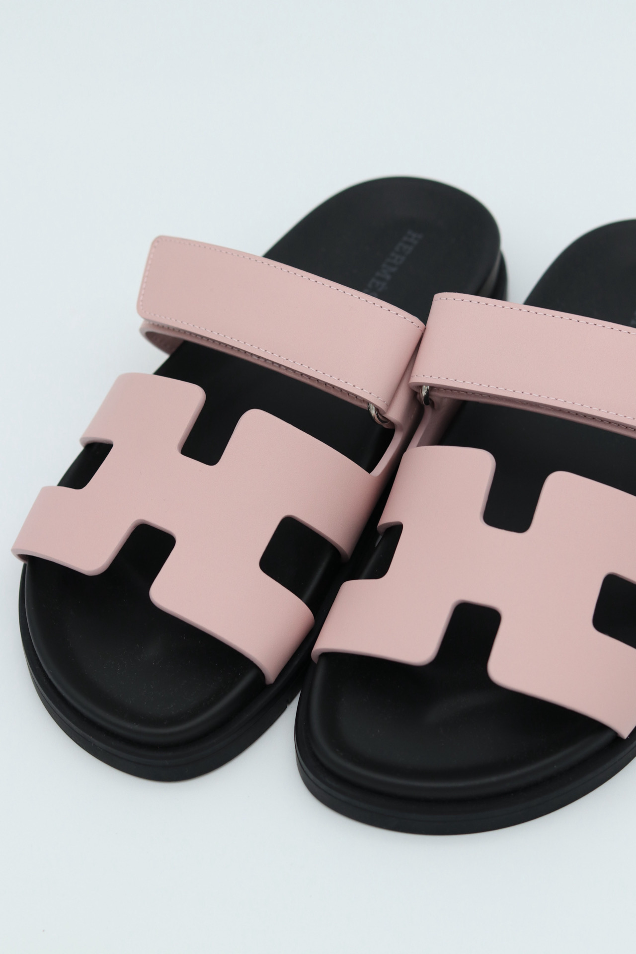 Casual, comfortable calfskin “H” cut-out sandal with anatomical rubber sole and adjustable strap.