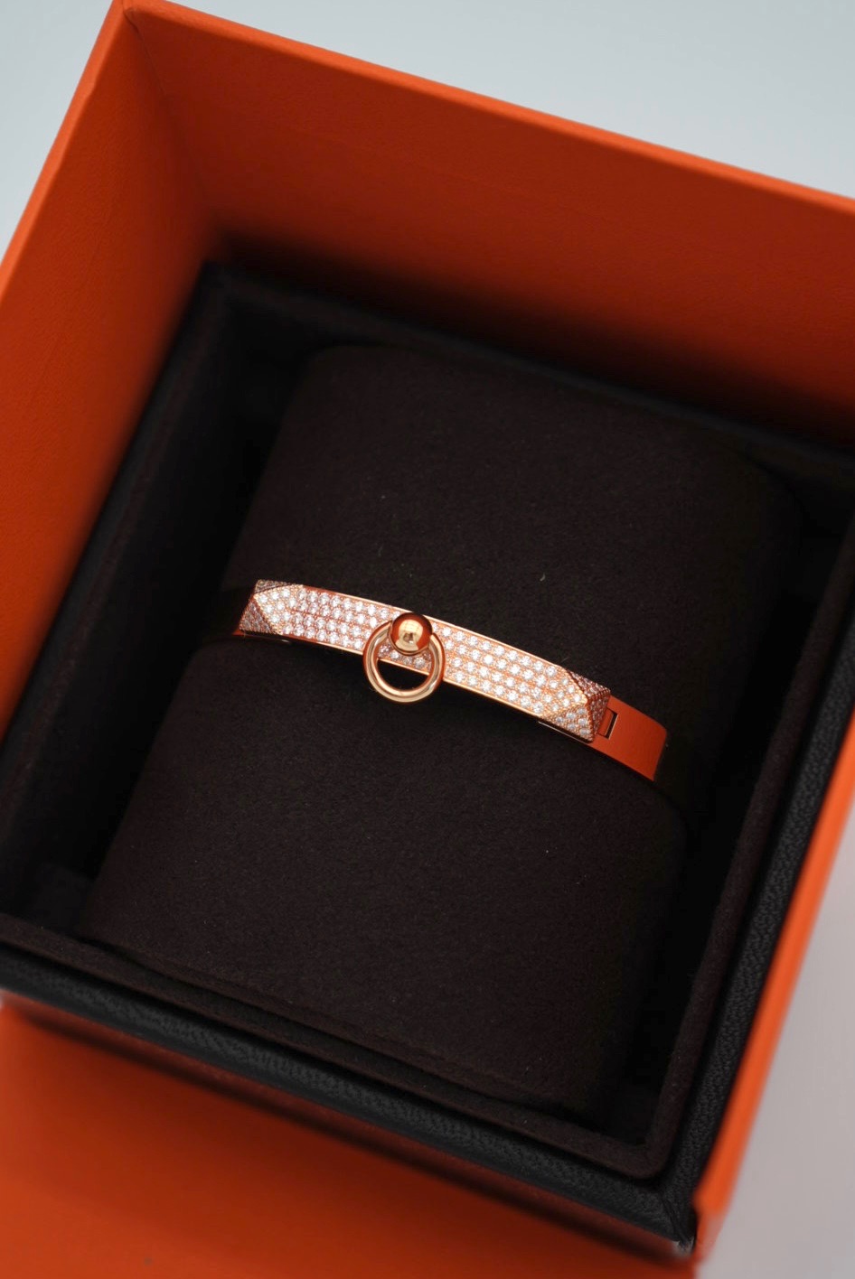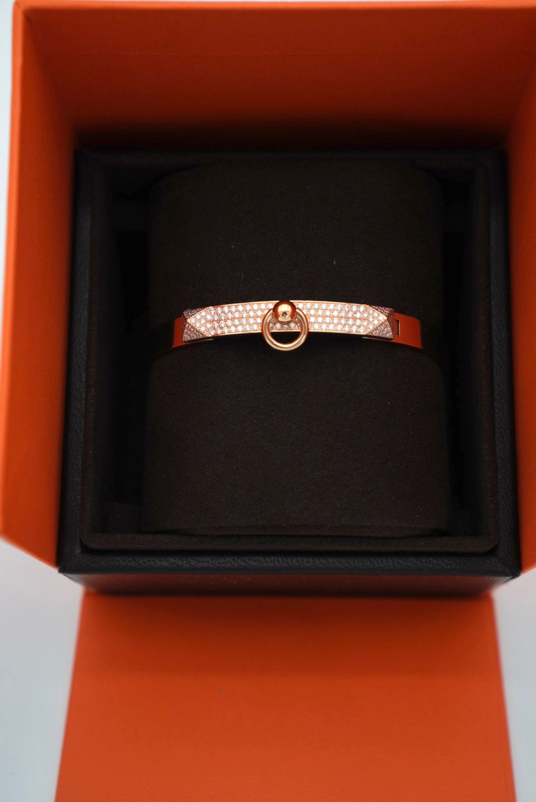Timeless, contemporary bracelet in rose gold set with diamonds.