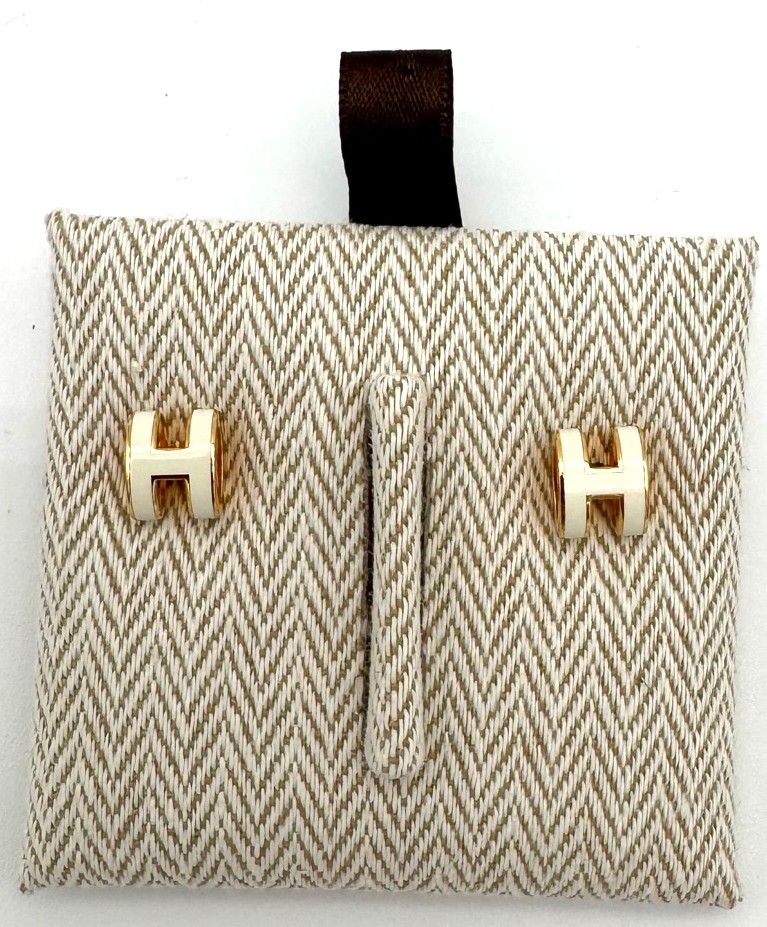 Mini Pop H Earrings Yellow Gold, White Enamel