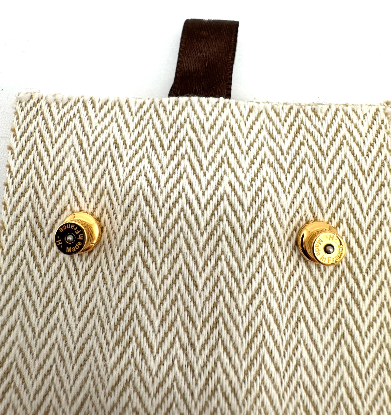 H lacquered design logo earrings in plated yellow gold.