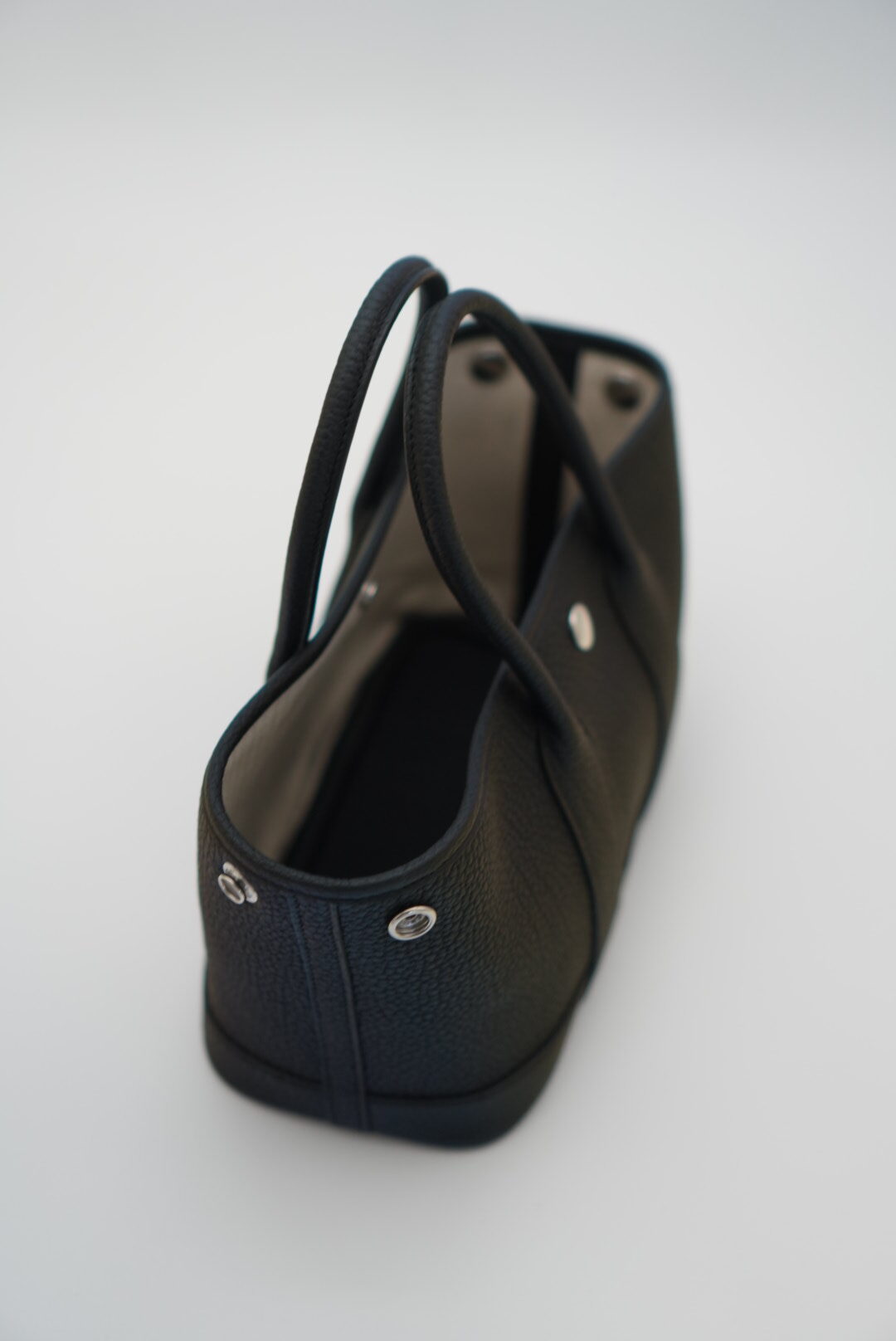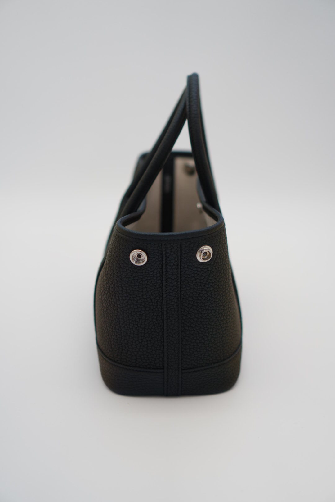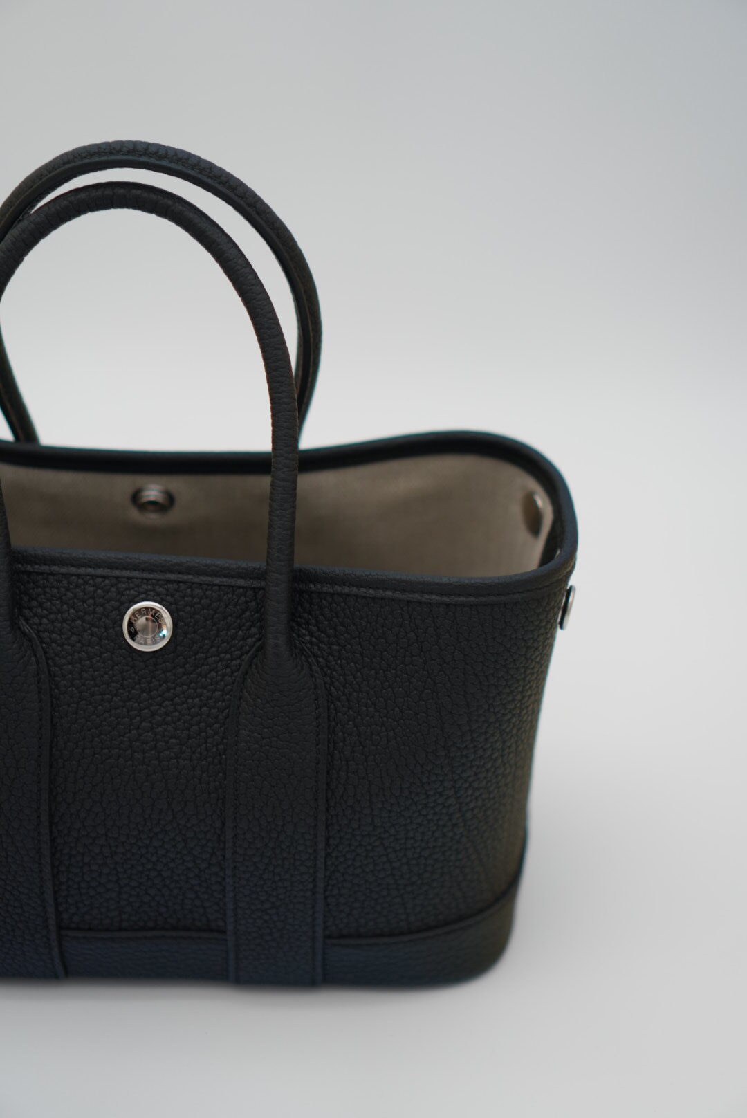 A versatile and functional, this adorable tote is the most popular size Garden Party.  The tote features rolled leather top handles and expandable sides.  The open top opens to a herringbone fabric interior with a zip pocket.