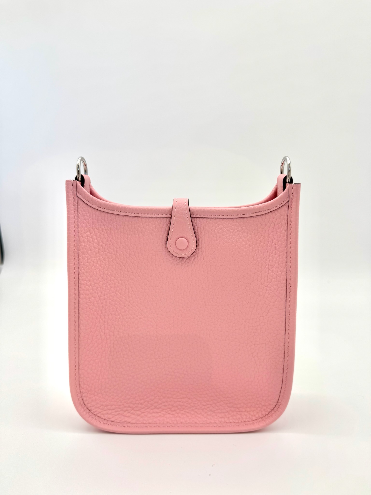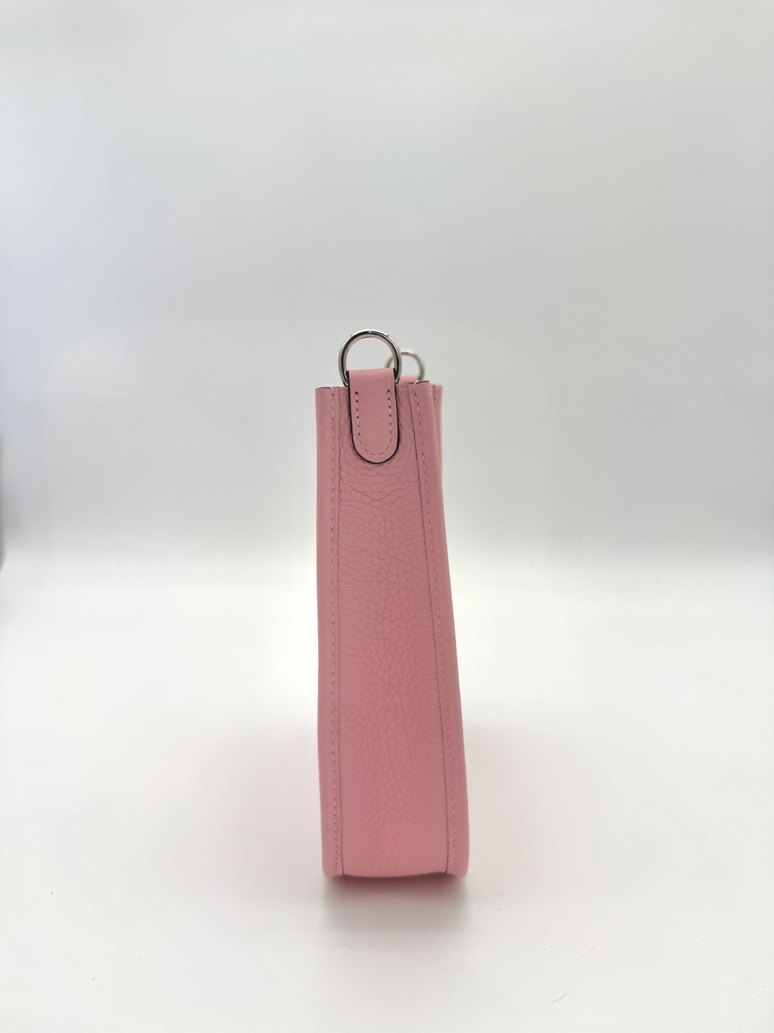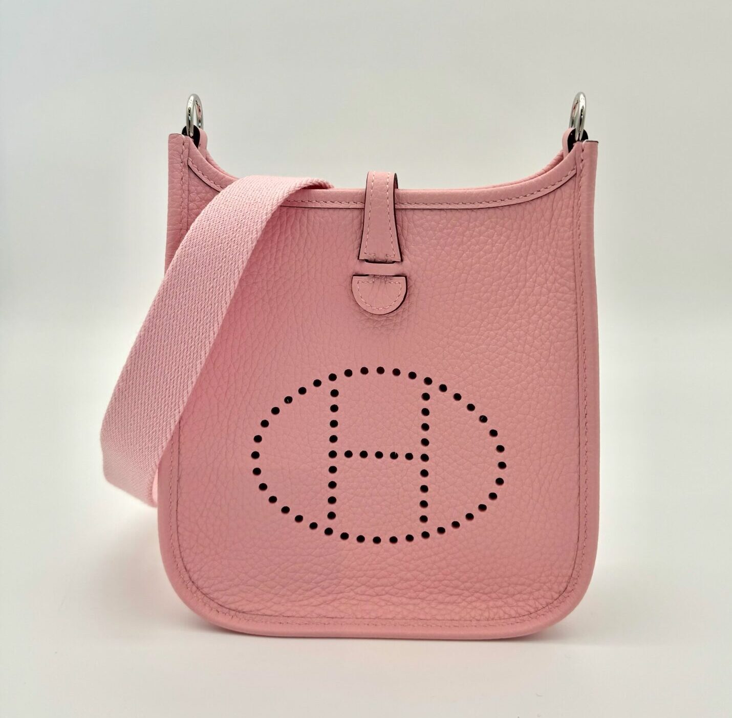 The Evelyne TPM is a petite crossbody messenger bag that is practical and casual, perfect for carrying essentials such as phone, wallet and keys. The bag features an Amazone canvas strap and palladium hardware with a perforated H inside an oval on the front of the bag.