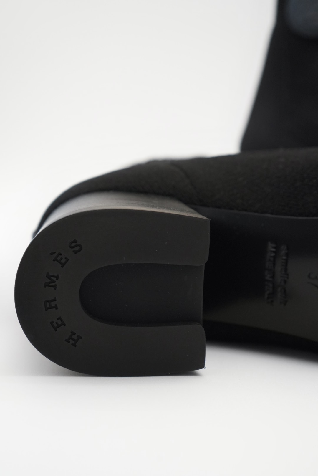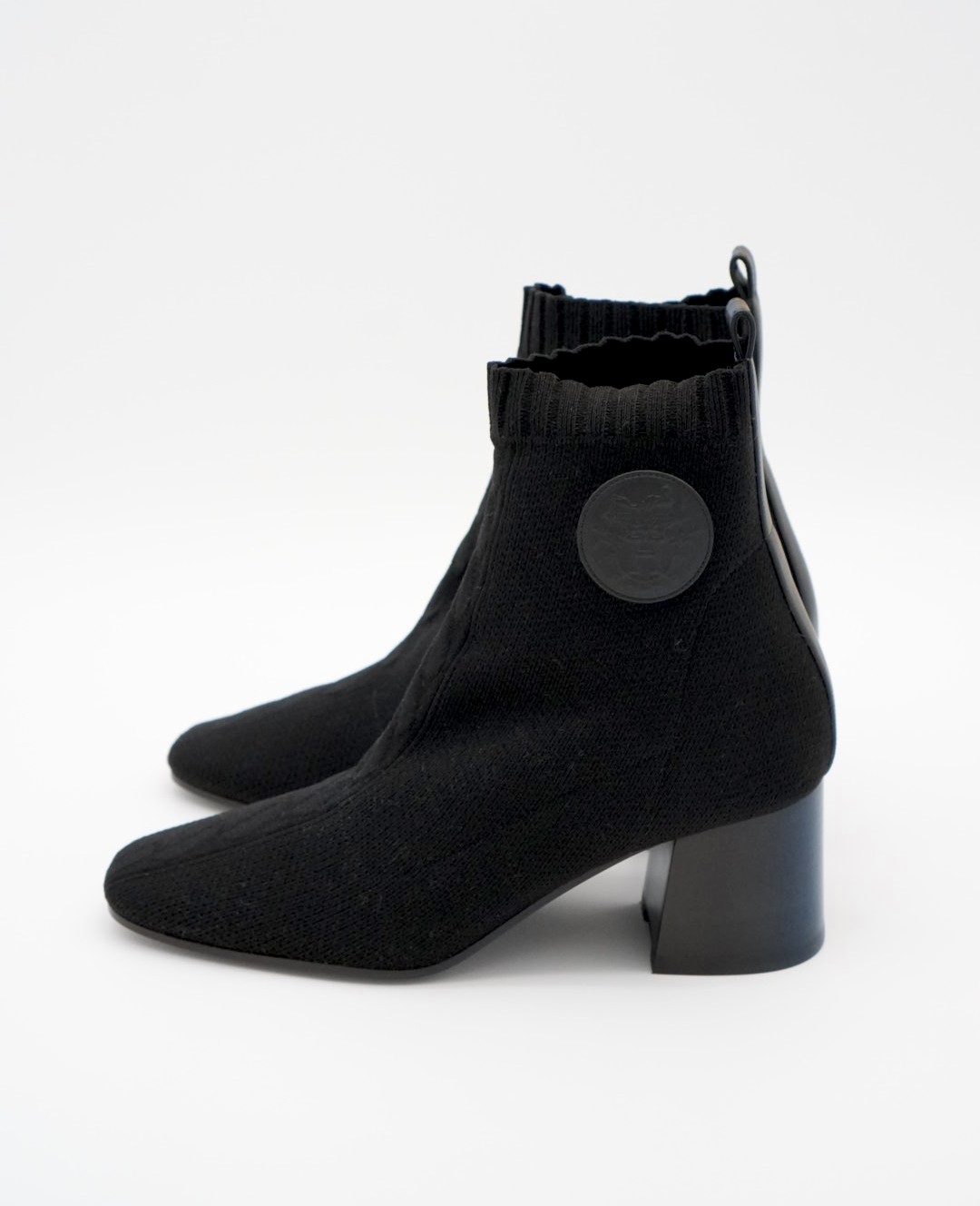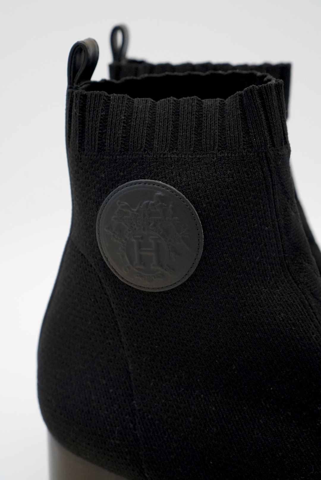 With the “Clic! C’est Noue” motif, Ex-Libris detail in calfskin leather and horseshoe heel, this knit ankle boot is a combination of elegance and timeless beauty.