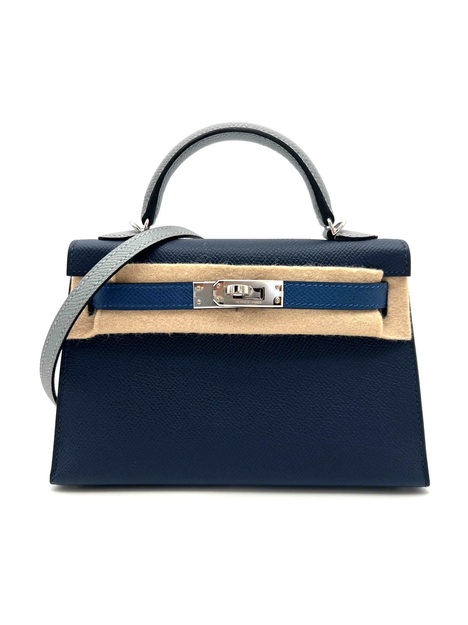 Kelly 20 Epsom Sellier Bleu Abyss / Bleu Tie / Gris Patine PHW