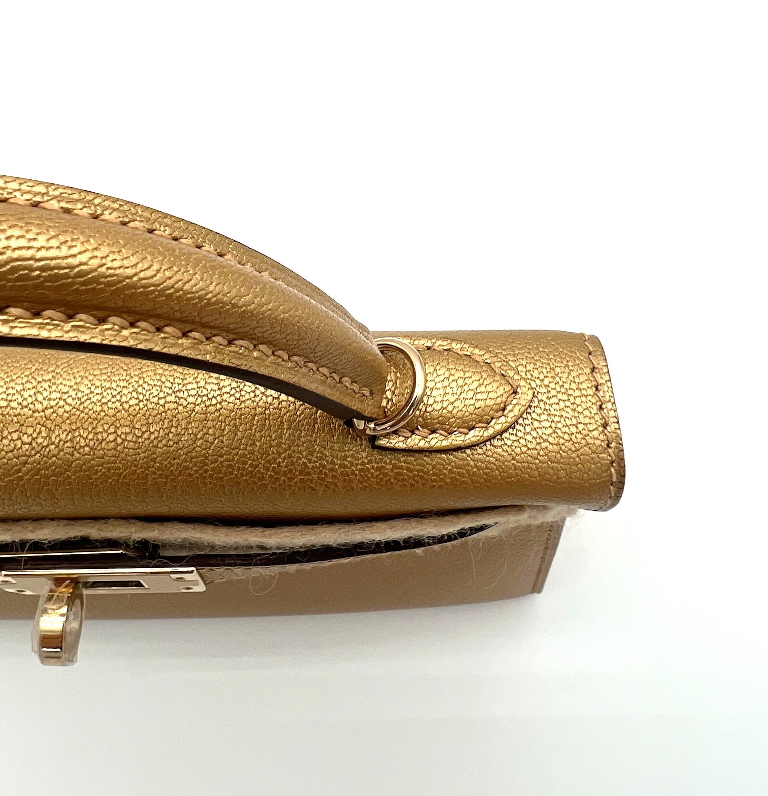 Kelly 20 Metallic Chevre Chamkilight Sellier Dore Permabrass