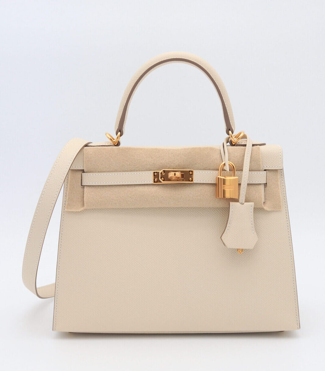 Kelly 25 Epsom Sellier Craie GHW