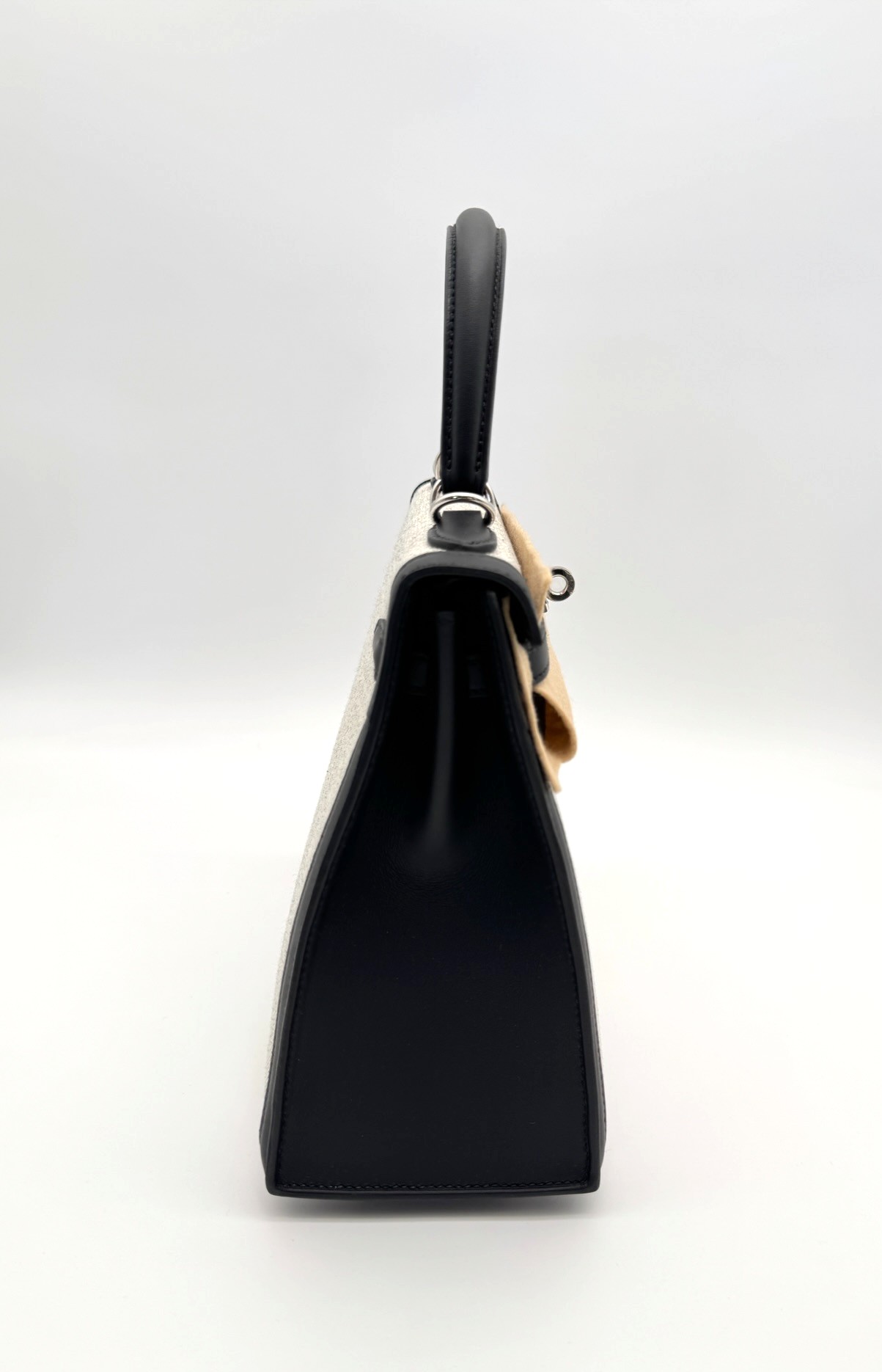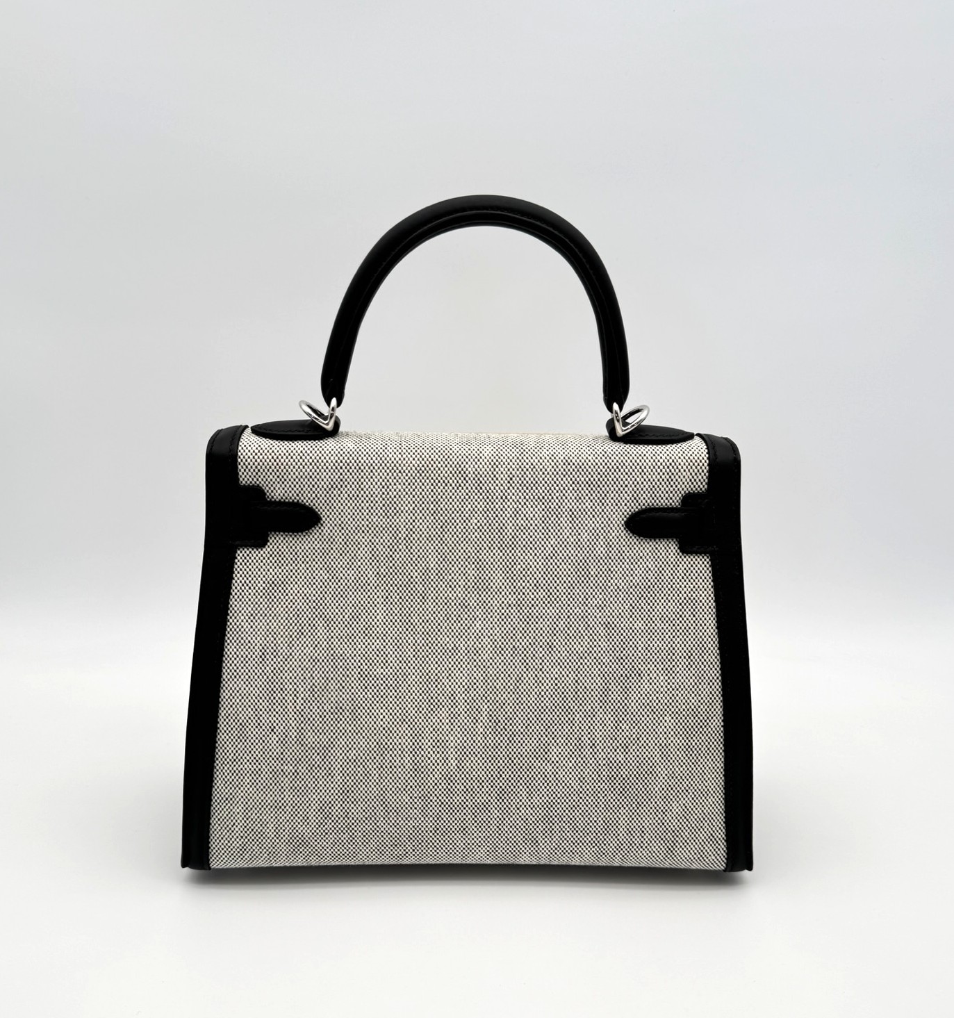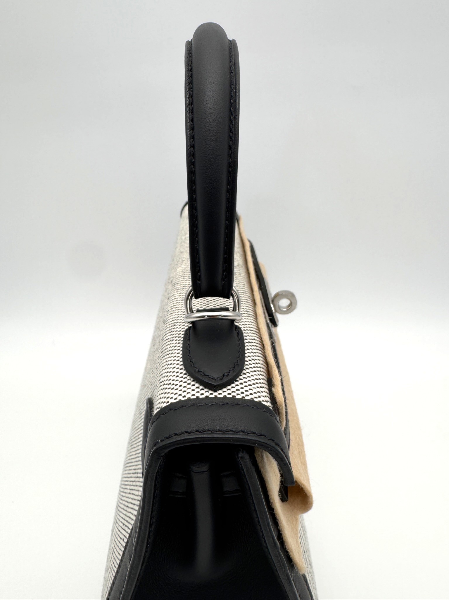 Kelly 25 Sellier Toile Ecru / Black Swift PHW