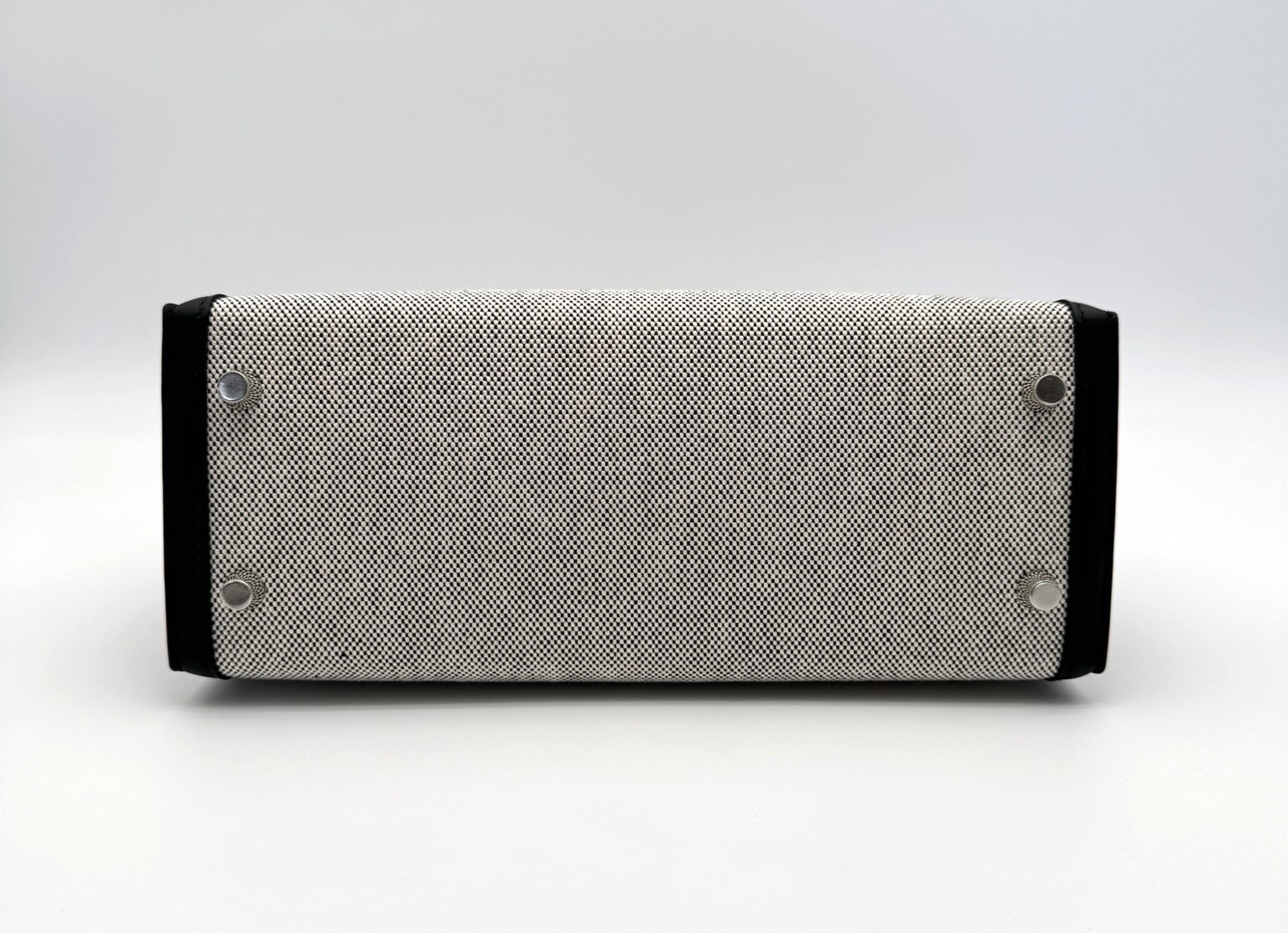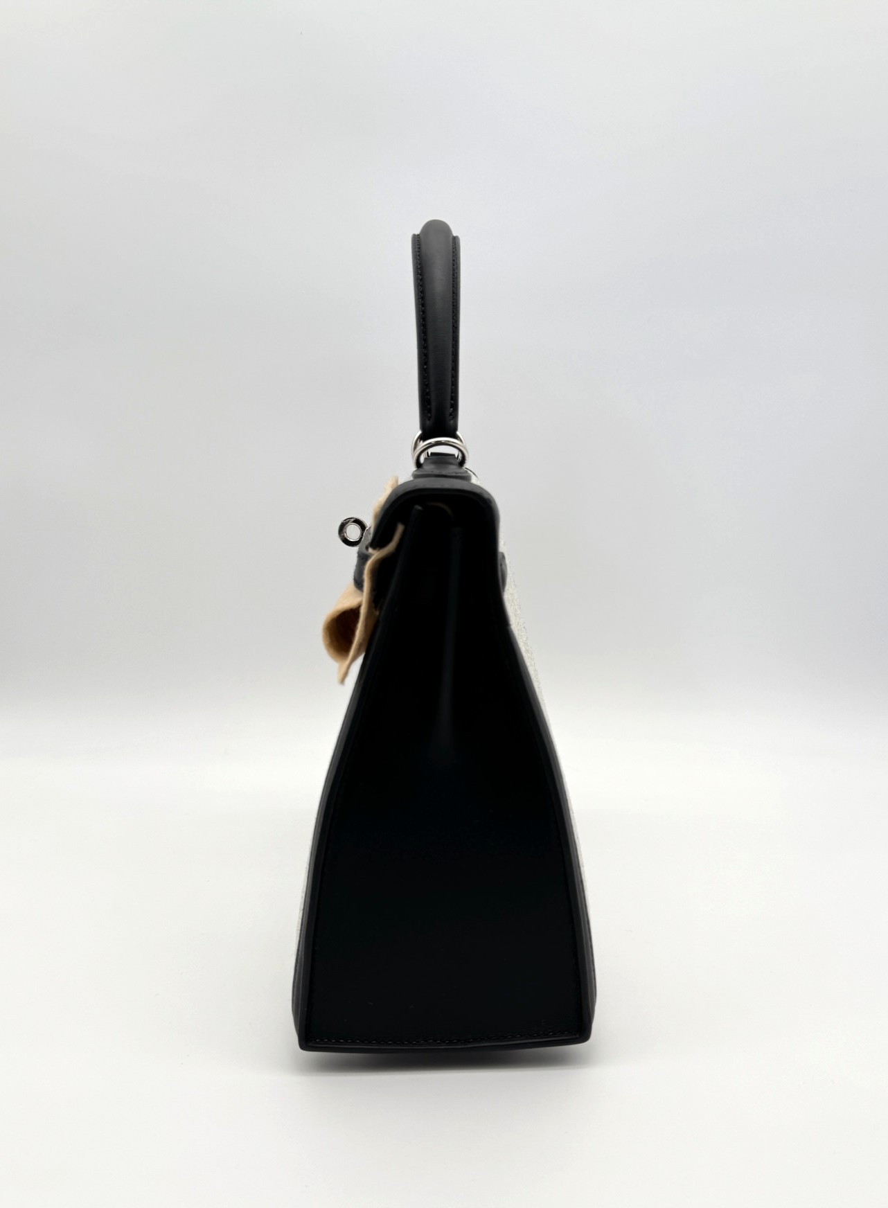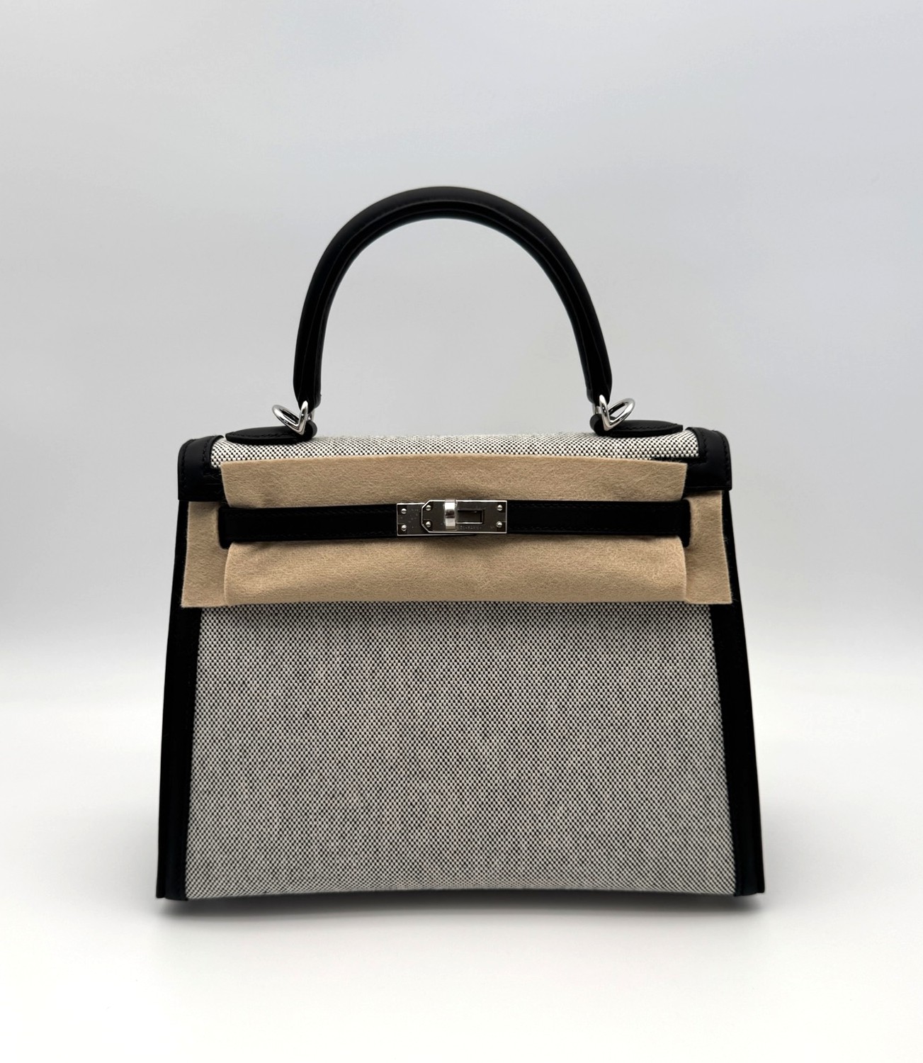 Kelly 25 Sellier Toile Ecru / Black Swift PHW