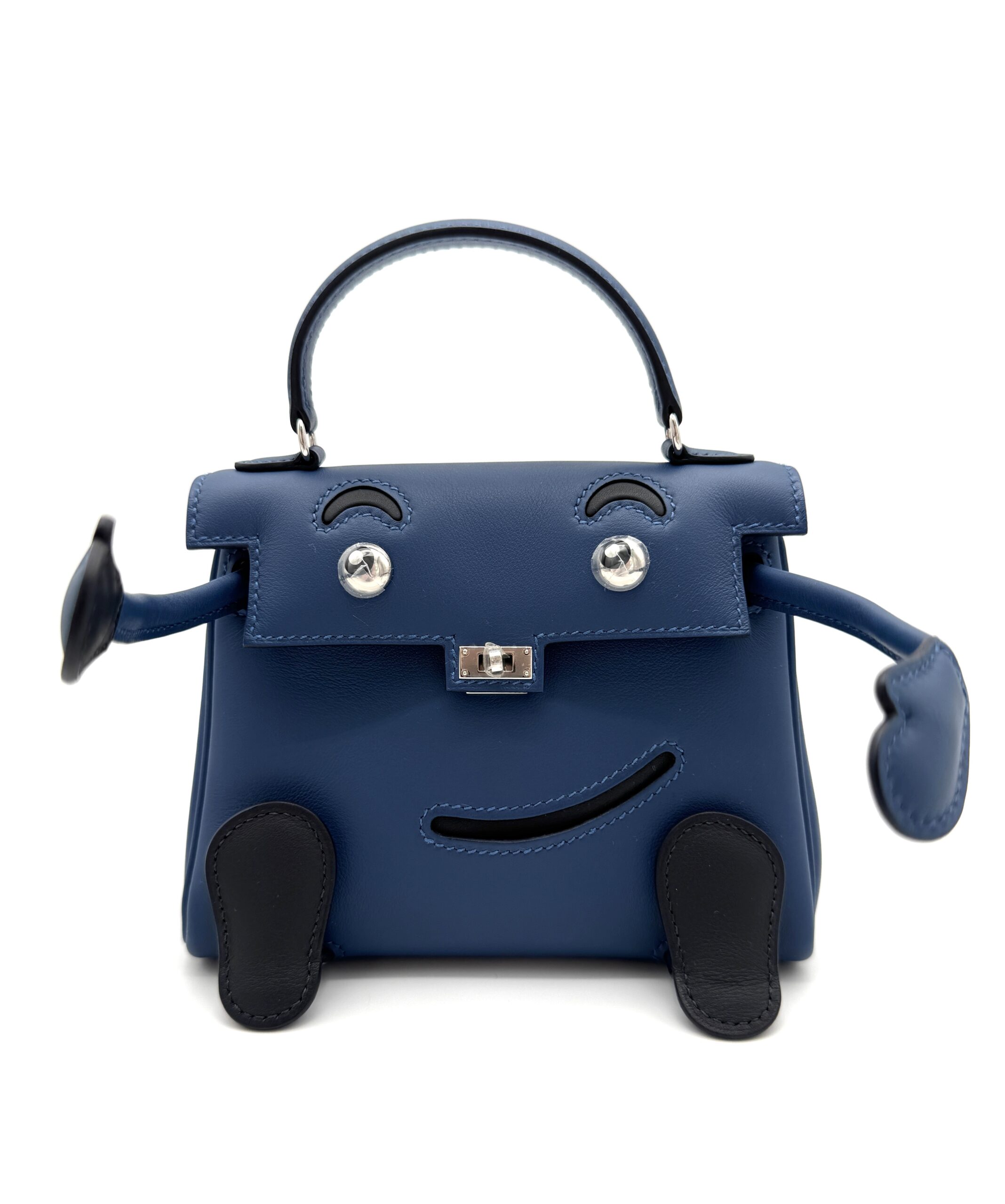 A whimsy, cute Hermes rare collectible bag that is beautifully handcrafted in Swift leather. It features a smiling face, movable arms and feet with palladium hardware.