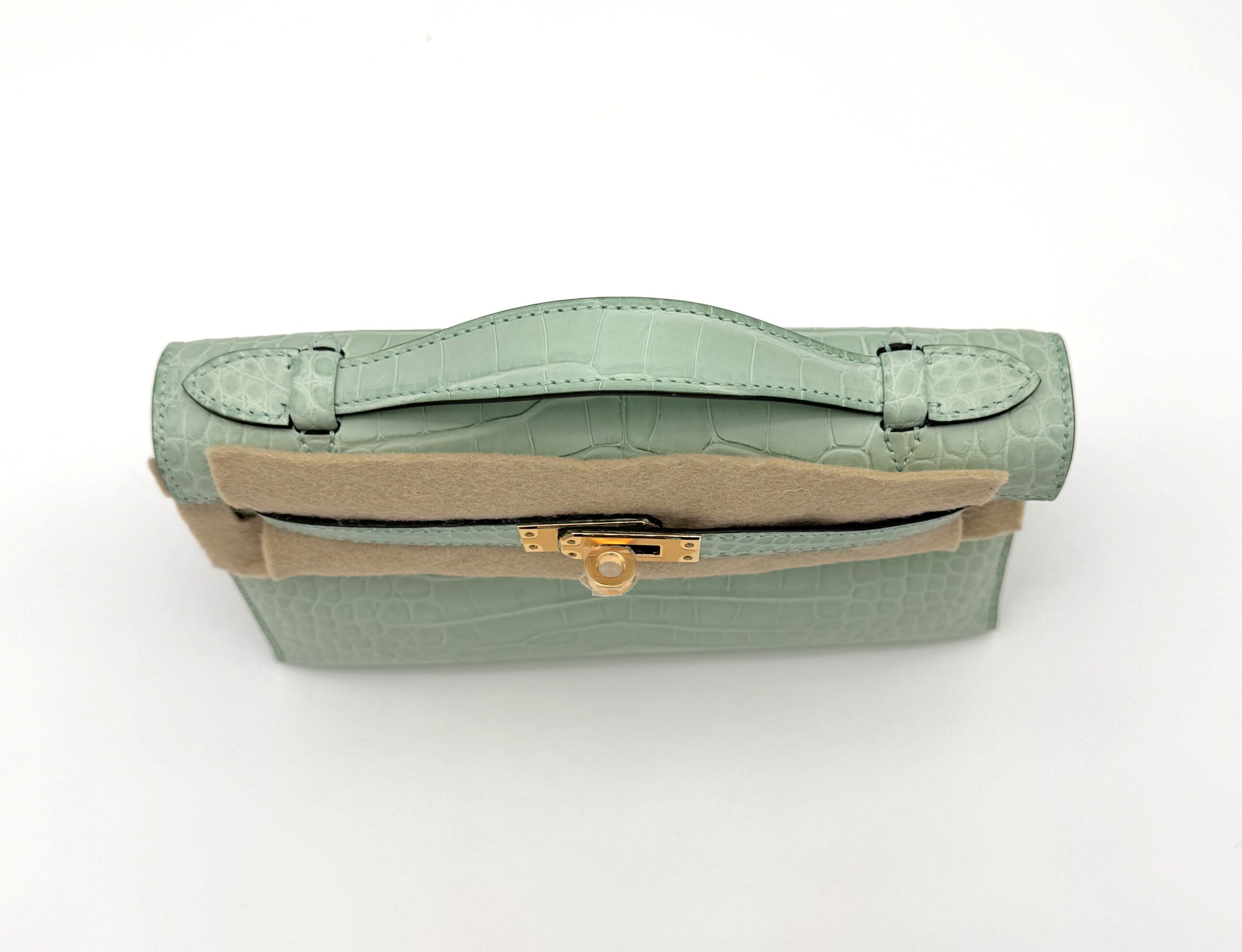 Kelly Pochette Matte Alligator Vert D’eau GHW