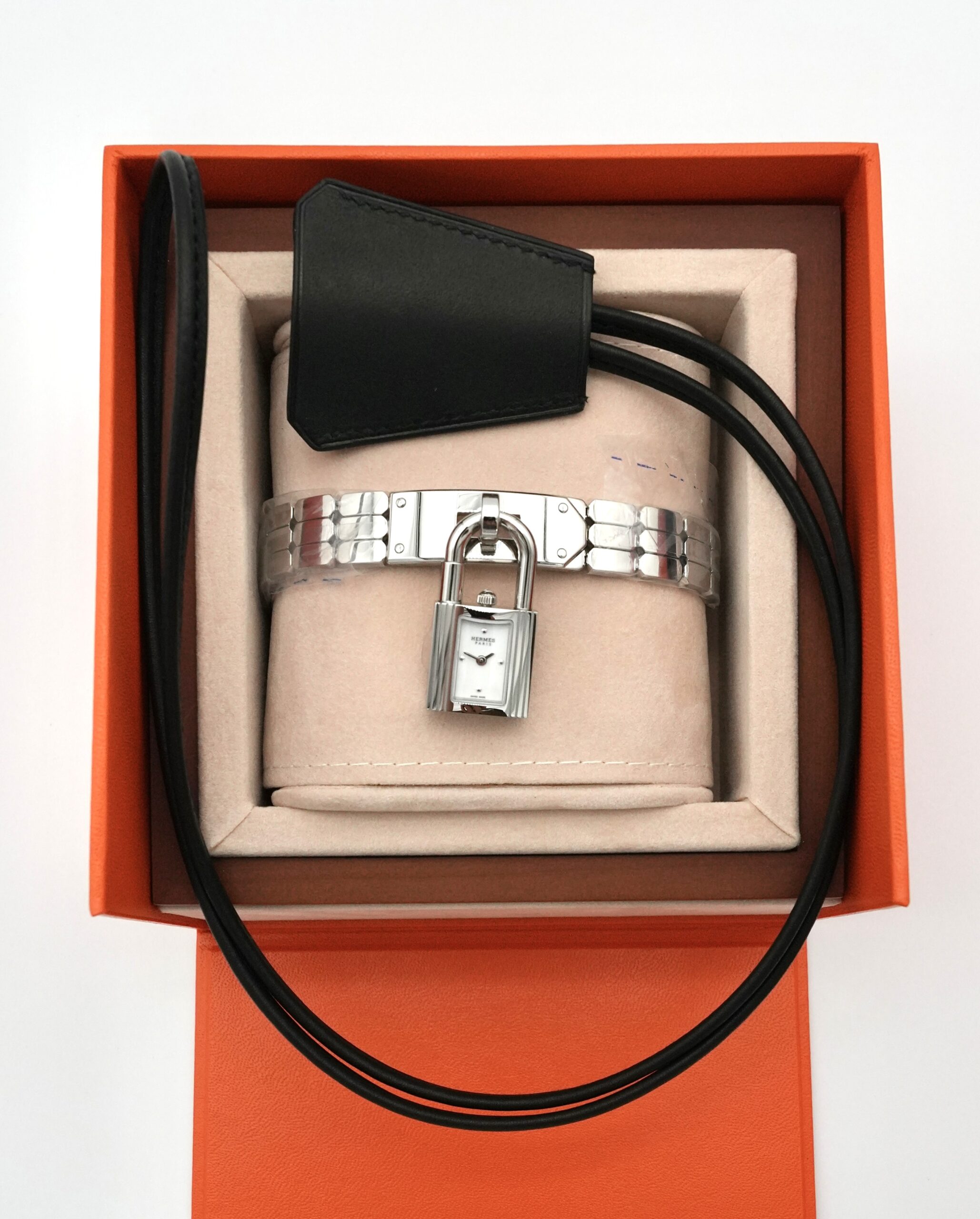 Stainless steel watch that has a freedom of wearing on the wrist or as a necklace makes this watch free-spirited, unique and timeless! Watch has a detachable padlock and lanyard in black Barenia calfskin.