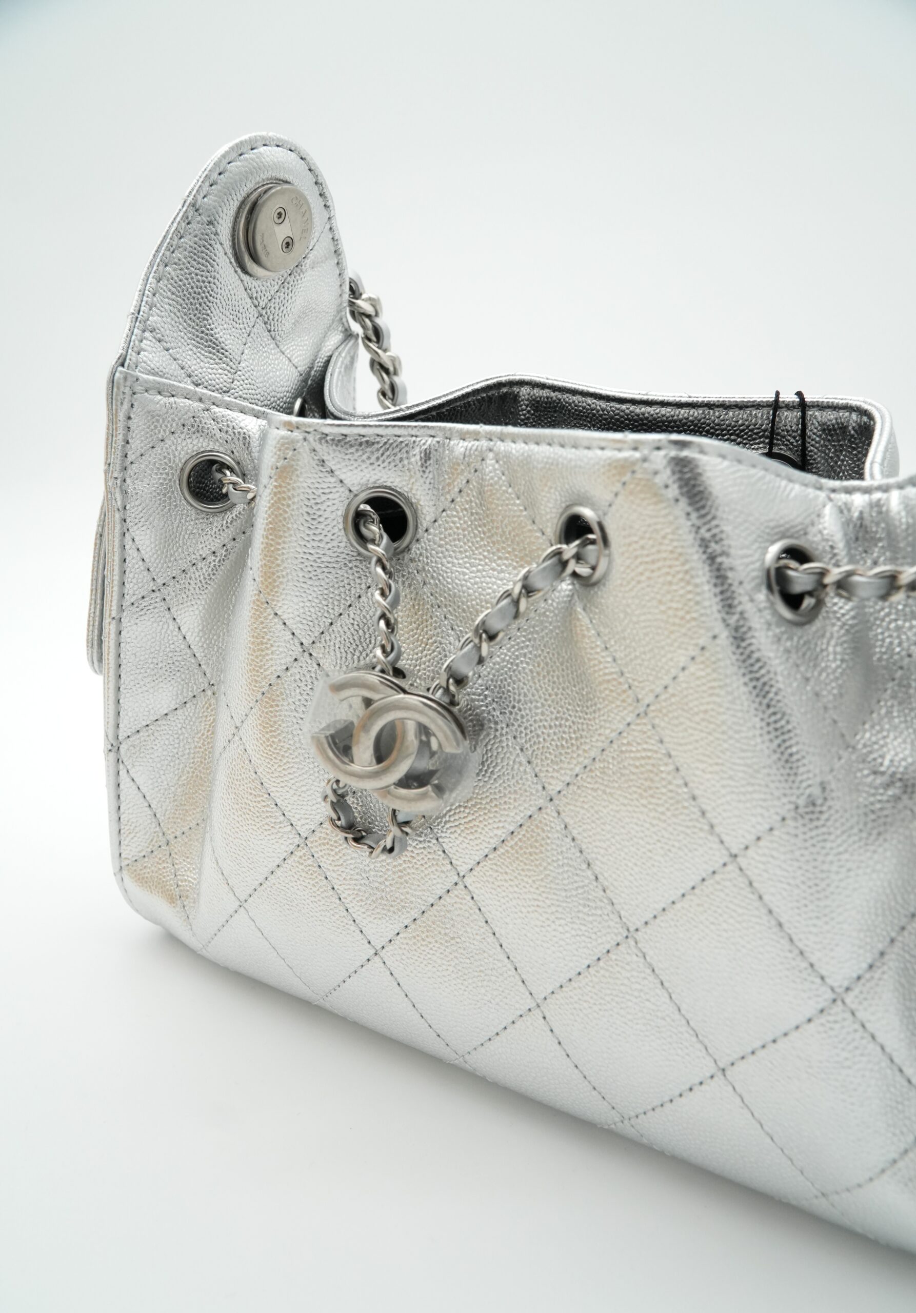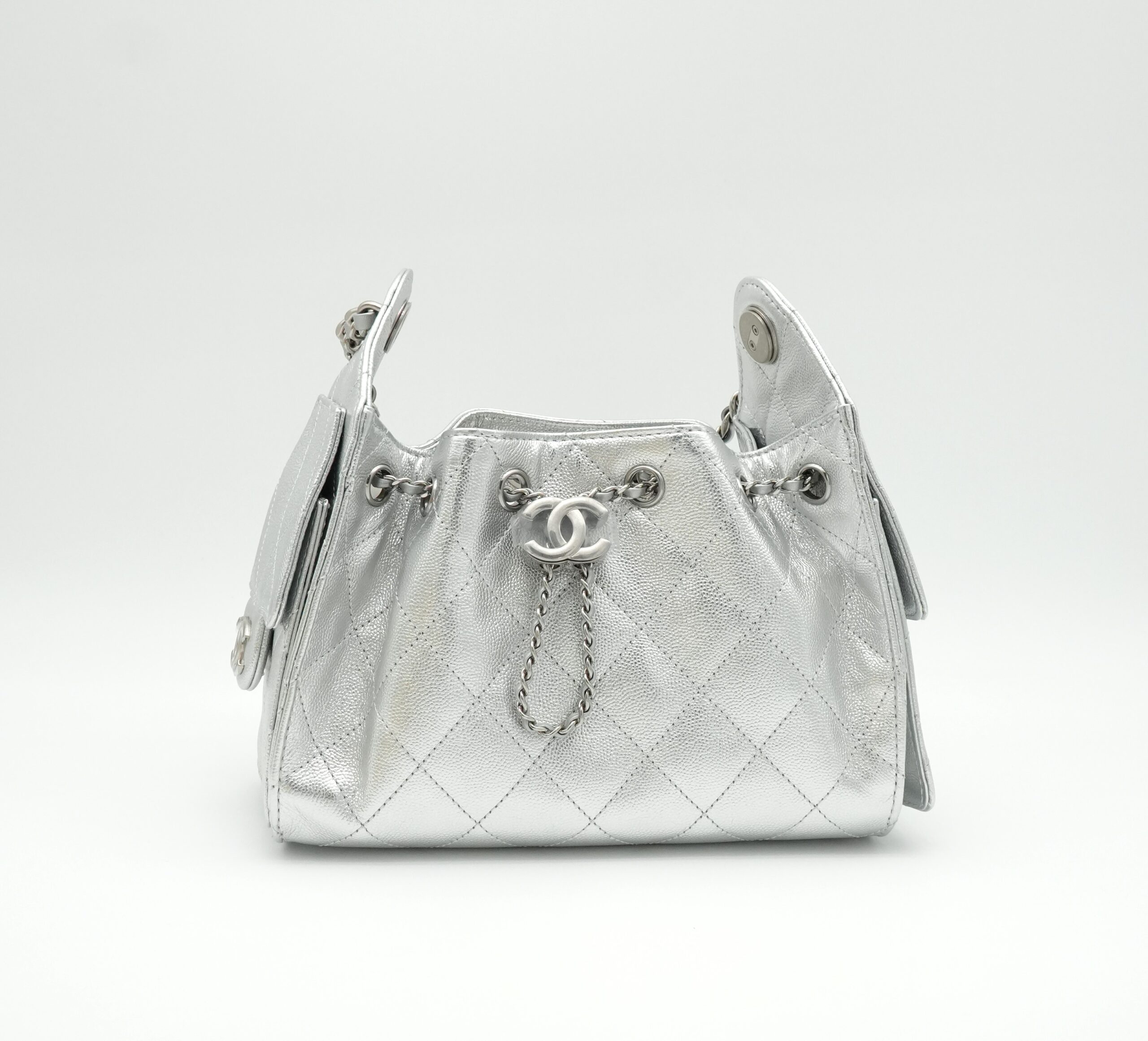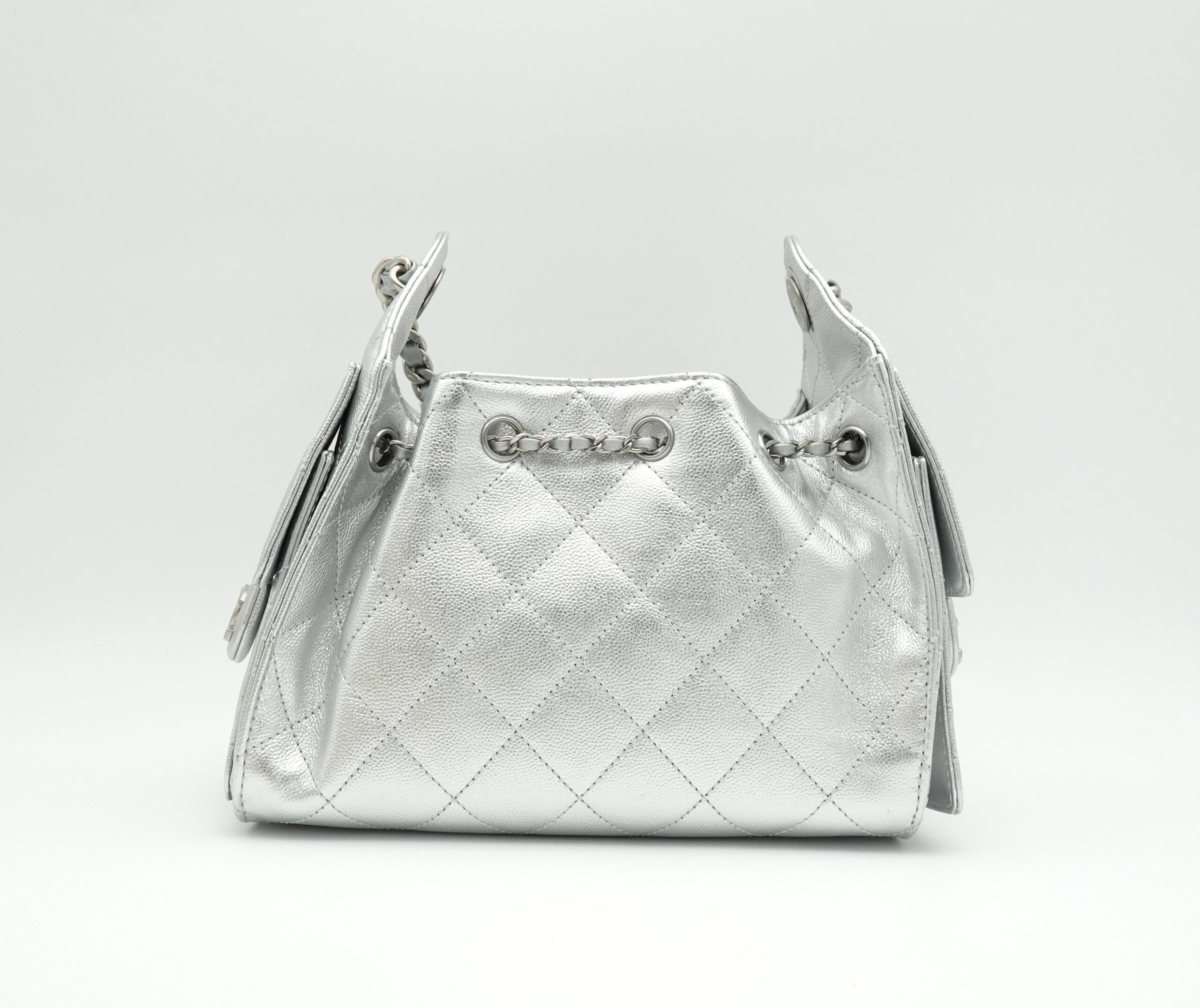 Mini 25 Handbag Metallic Grained Calfskin Silver