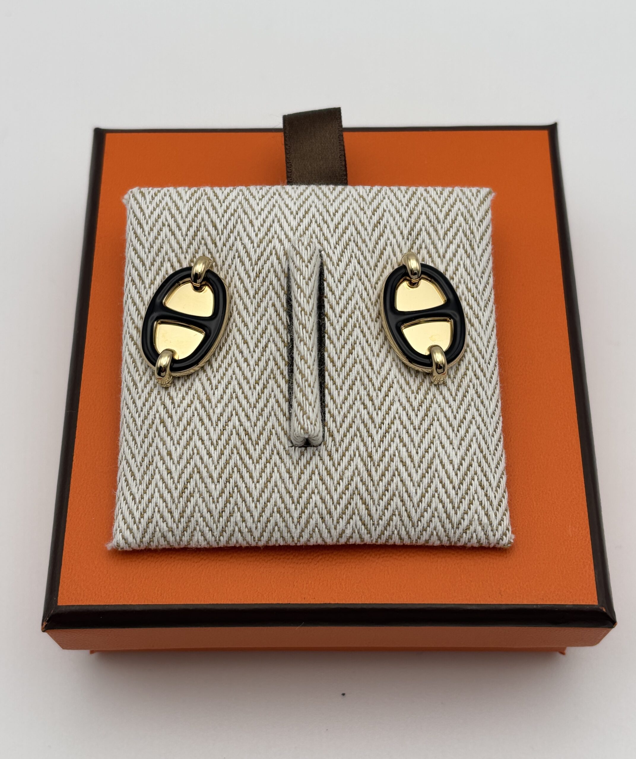 Mini Maillon Earrings Yellow Gold, Black Enamel