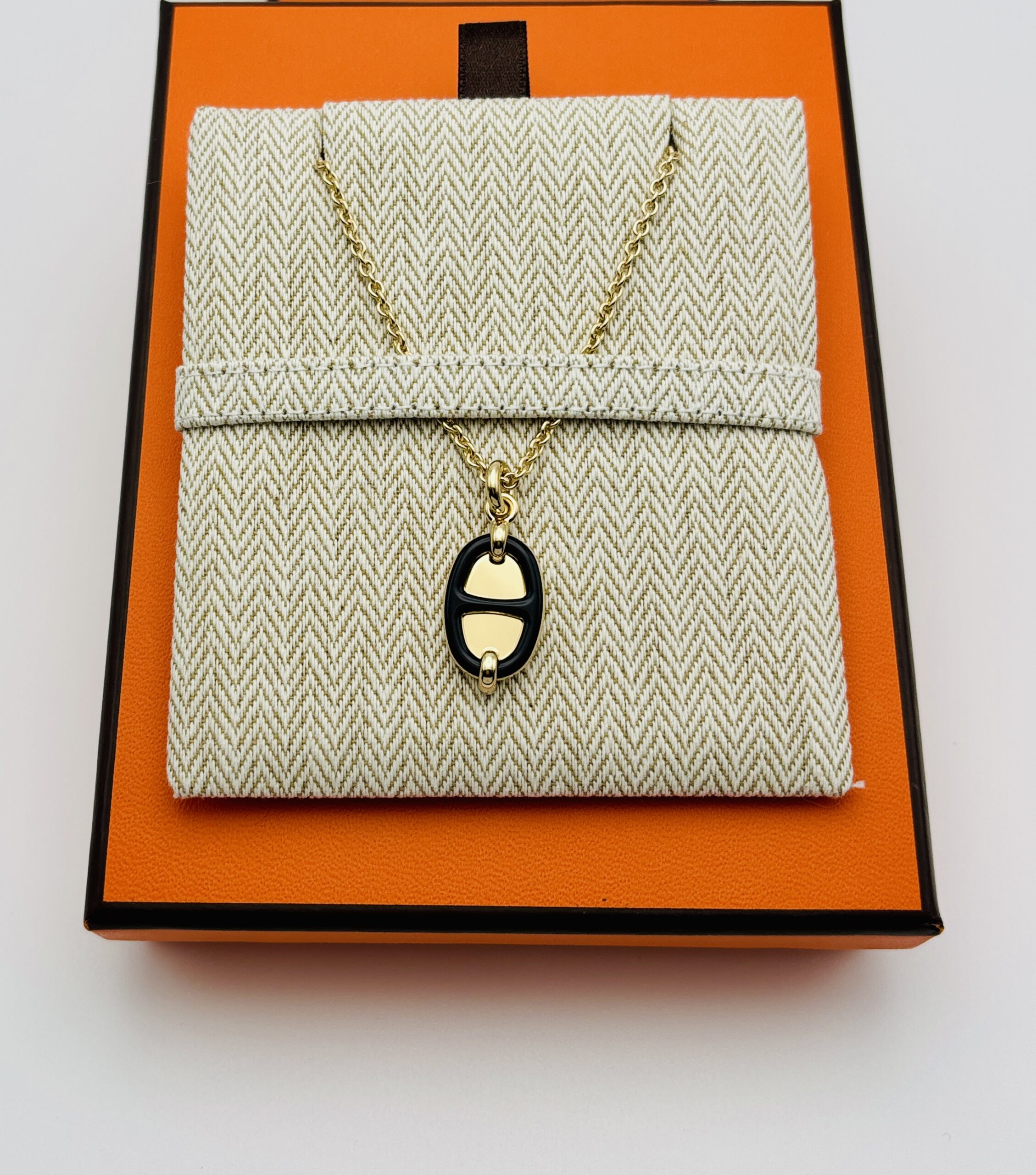 Mini Maillon Pendant Necklace Yellow Gold, Black Enamel Small Model