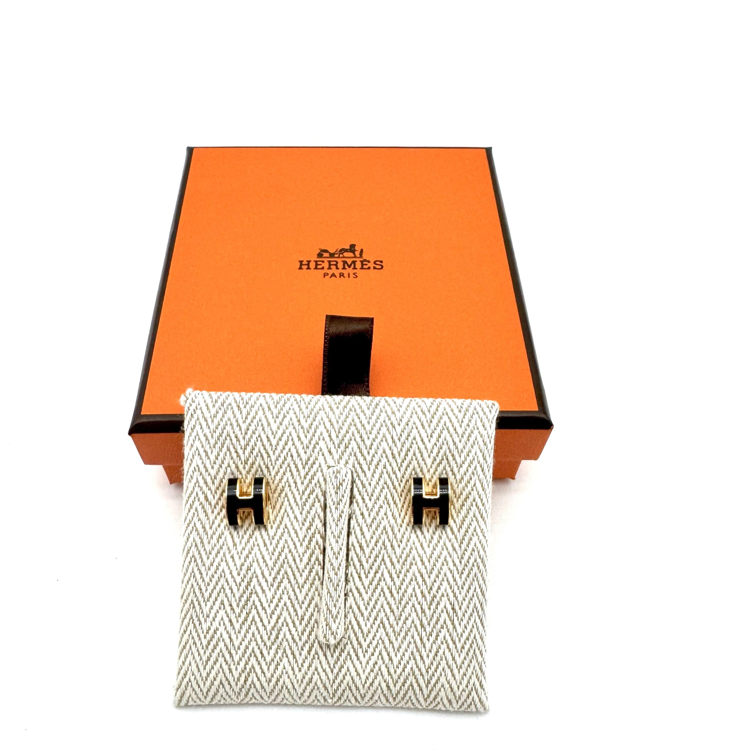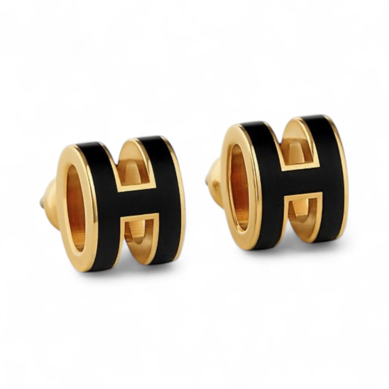 Mini Pop H Earrings Yellow Gold, Black Enamel
