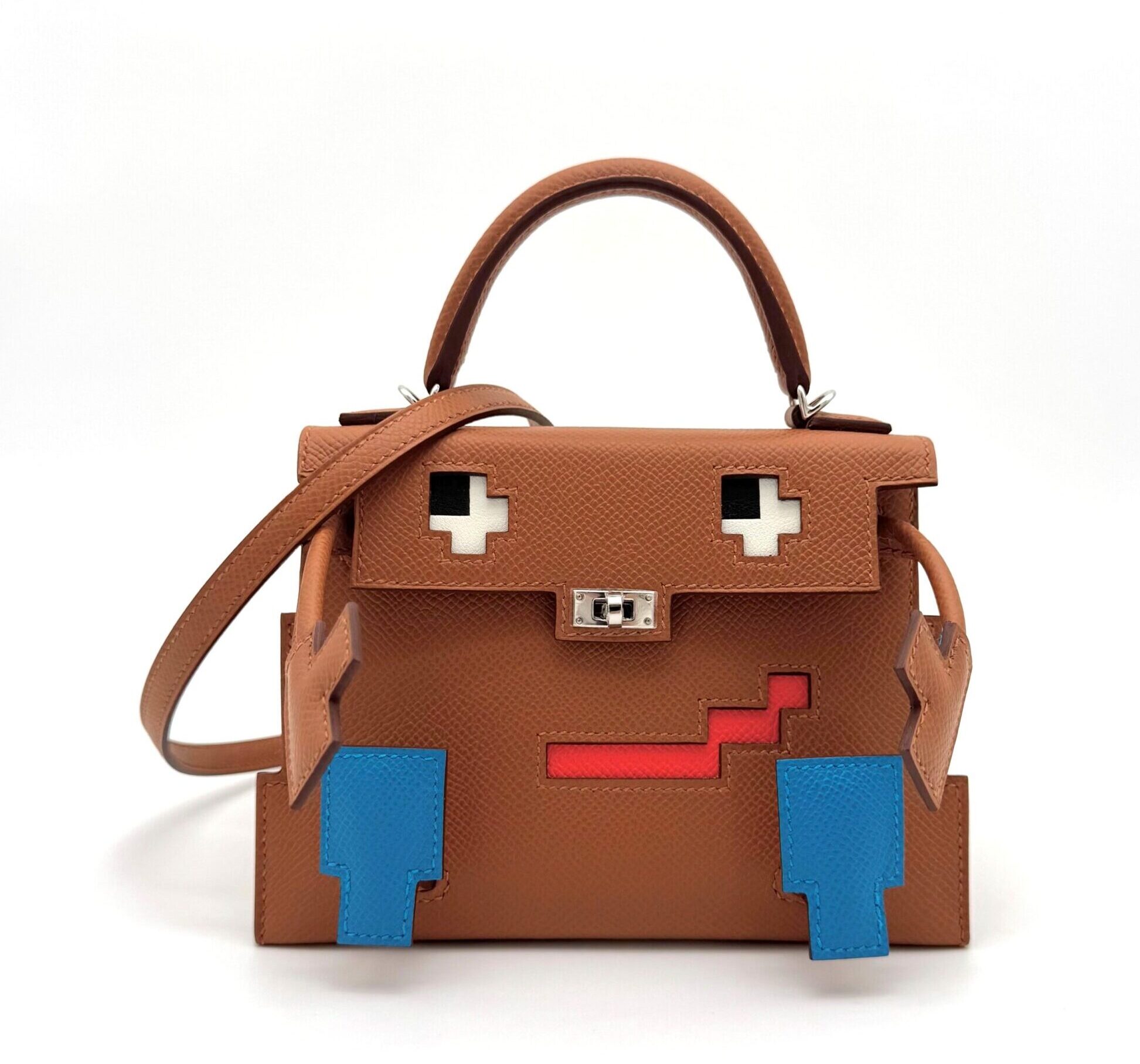 A whimsy, cute Hermes rare collectible bag that is beautifully handcrafted in Epsom leather. It features a smiling face, movable arms and feet with palladium hardware.
