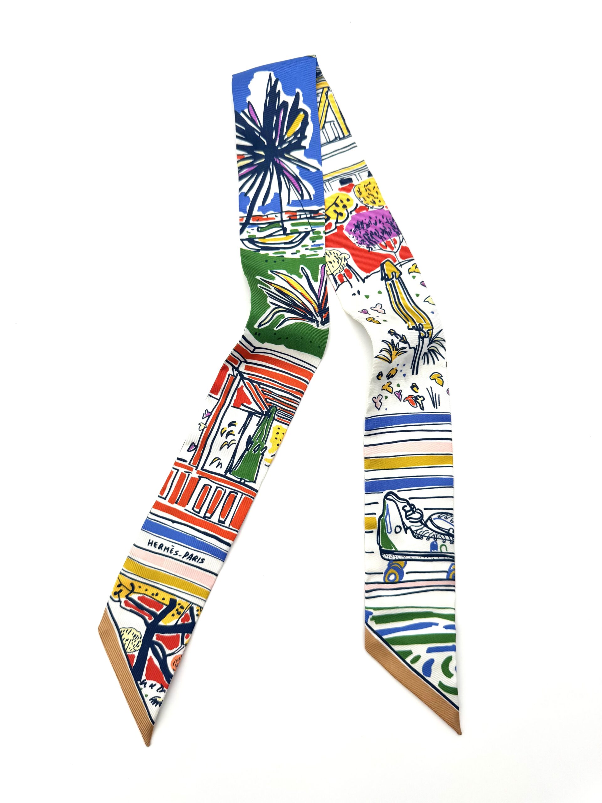 A unique, whimsical silk twilly that can be worn in many ways. 100% silk