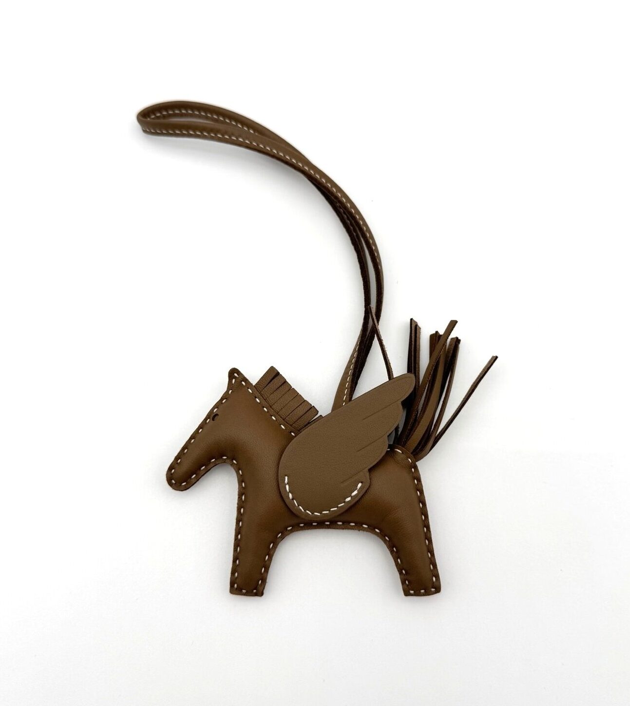 In the shape of a pegasus with wings, fringe mane and tail and a top loop strap, this cute bag charm is the epitome of the equestrian Hermes world.