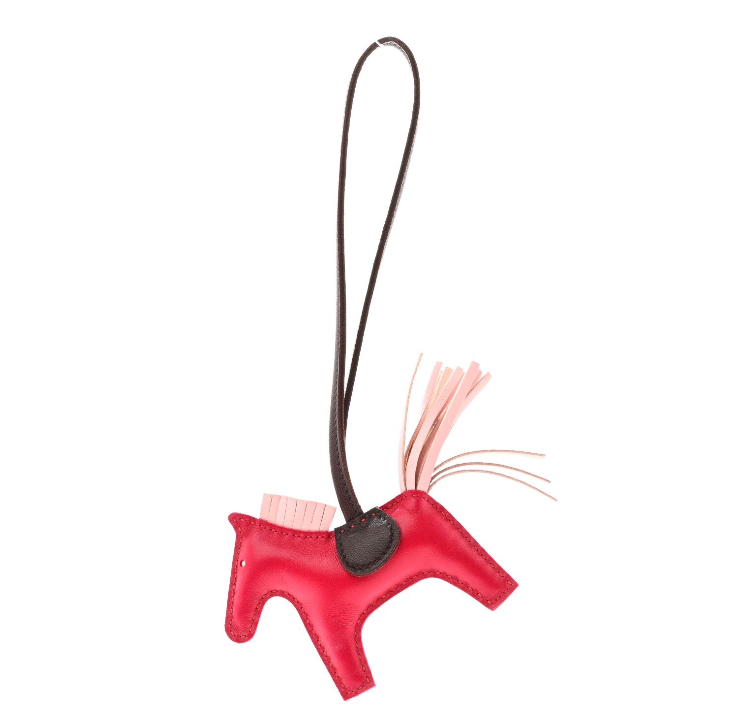 In a shape of a horse with fringe mane and tail and a top loop strap, this cute bag charm is the epitome of the equestrian Hermes world.