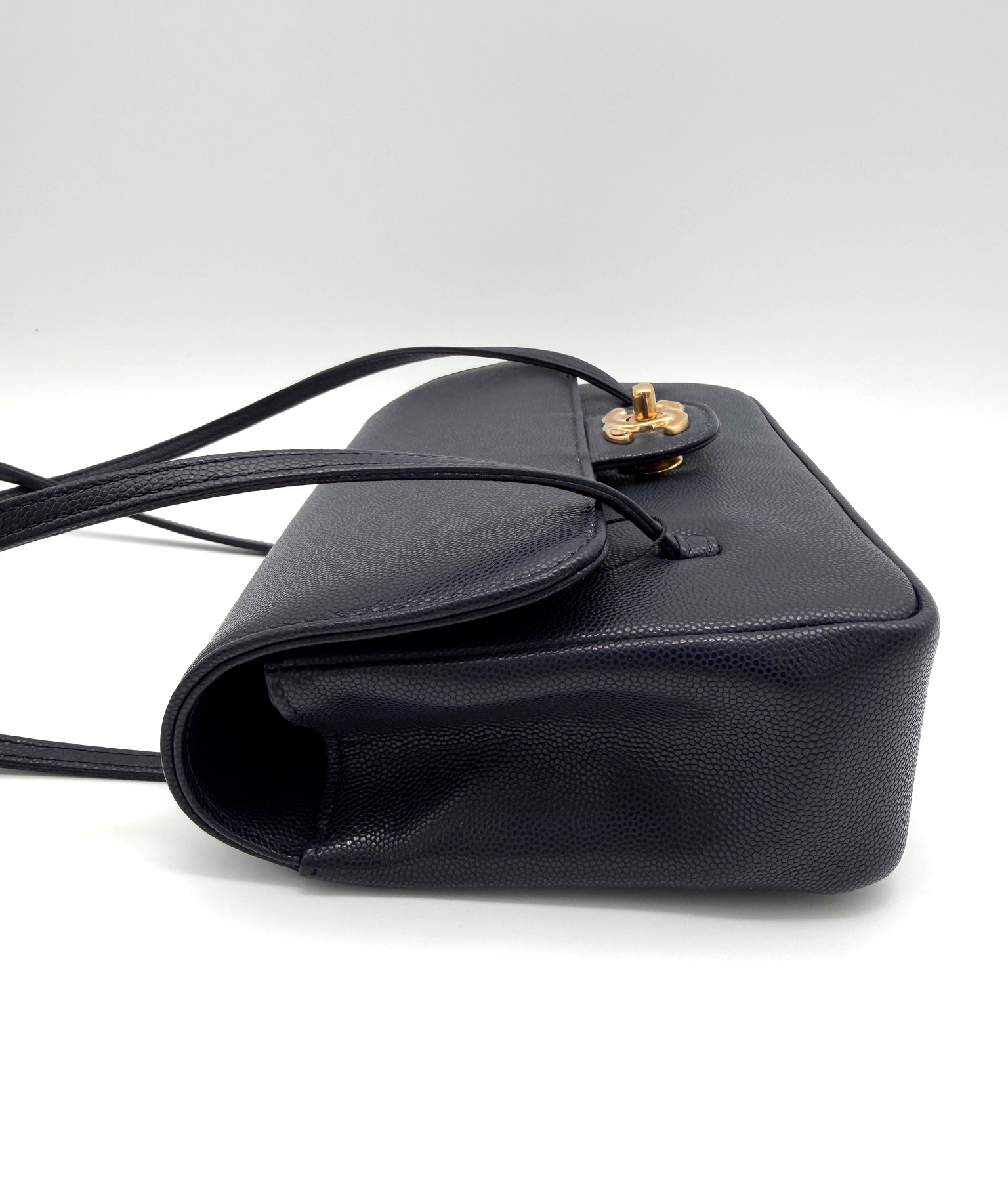 Shiny Caviar Mini Preppy Coco Flap Bag Black GHW