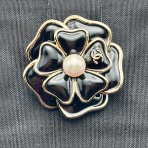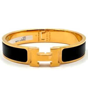Mini Pop H Pendant Necklace Yellow Gold, Black Enamel