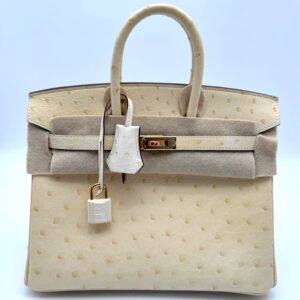 Birkin 25 Retourne Ostrich Nata Boreal GHW